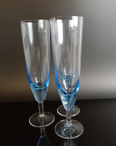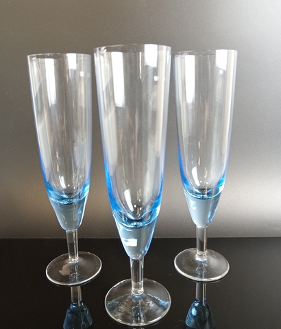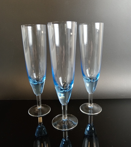 Бокалы для шампанского набор из 3 штук цветное синее стекло, винтаж времён СССР 1970-1990 гг. Высота - 18.5 см, обьем -150 мл.
