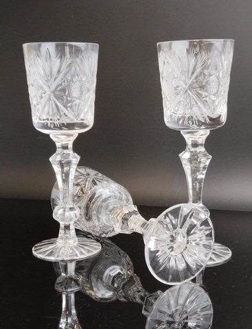 Антуражное хрустальные бокалы на изящных ножках на 3 персоны - винтажная роскошь в вашем доме. Высота - 16.5 см. Состояние на фото.