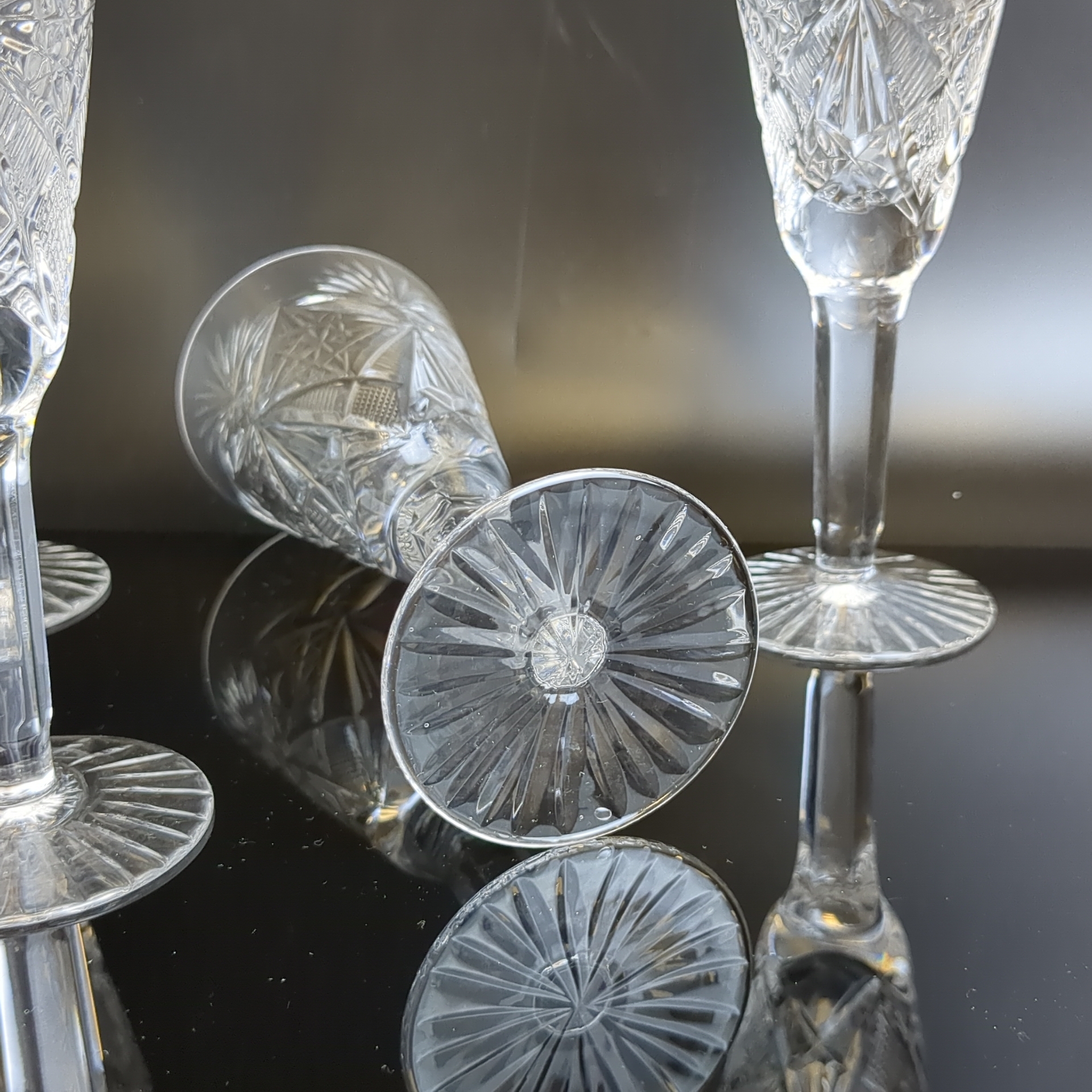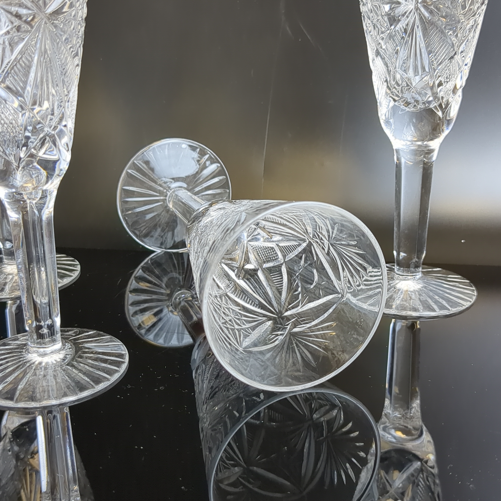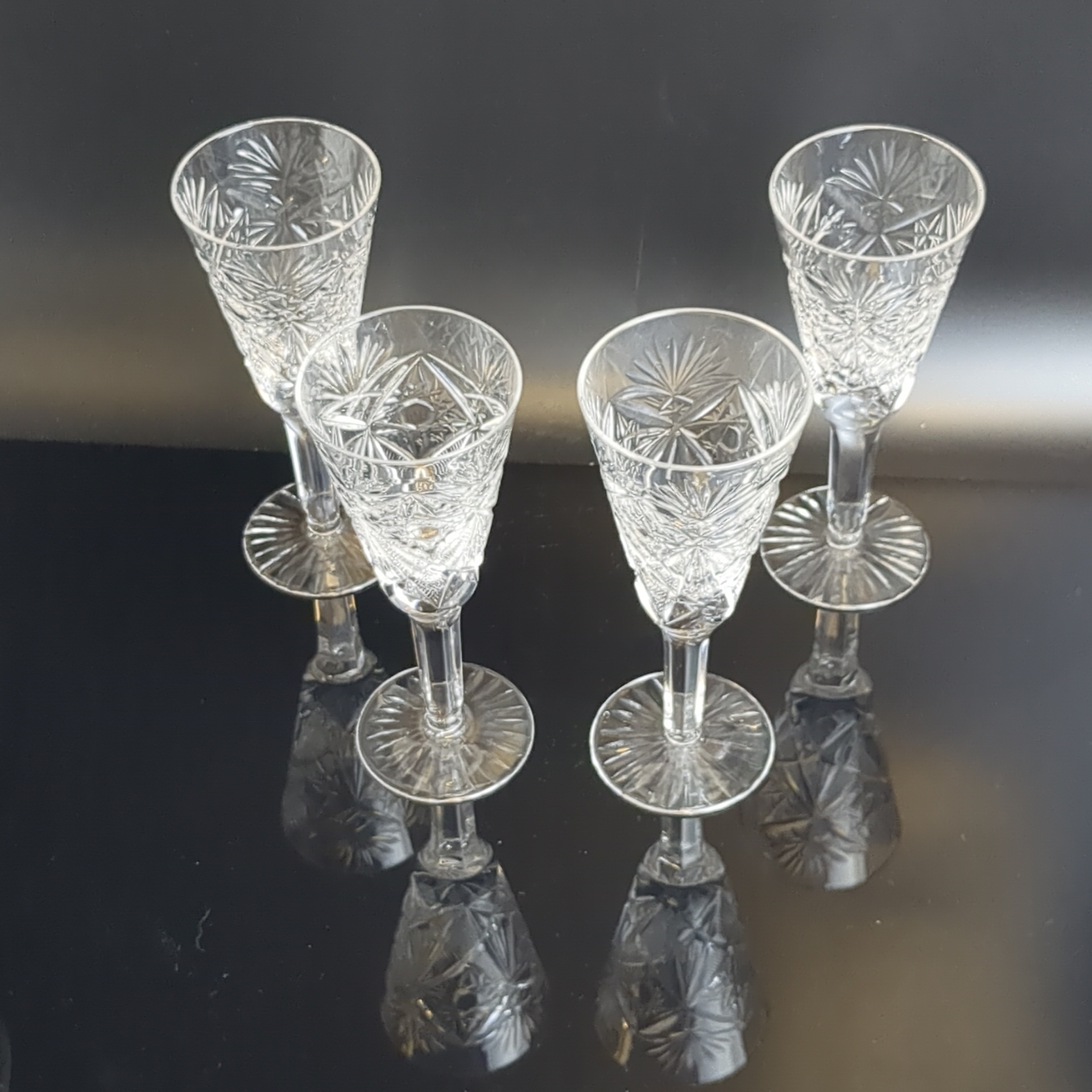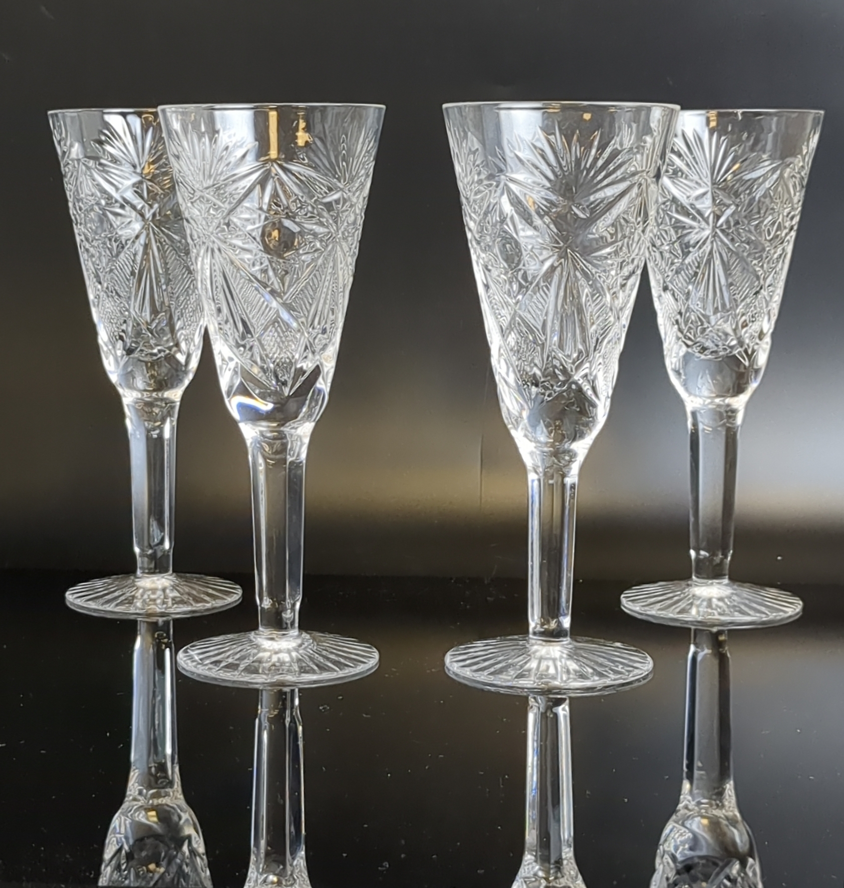 Бокалы хрустальные набор из 4 штук, хрусталь, алмазная грань, высота -15 см, (объём -? мл), винтаж СССР 1970-1990 гг. Состояние на фото