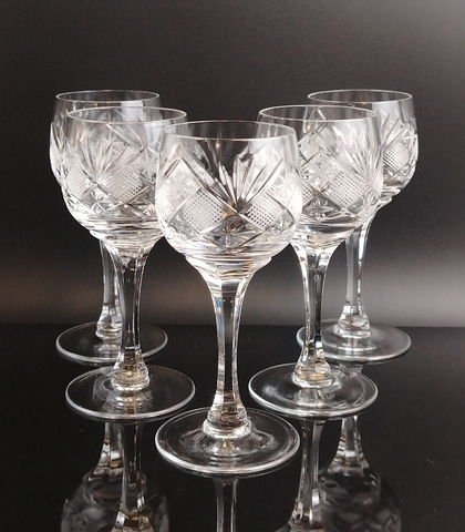 Бокалы набор из 5 штук хрустальные - винтажная роскошь в вашем доме. Высота - 12.5 см. Состояние на фото.