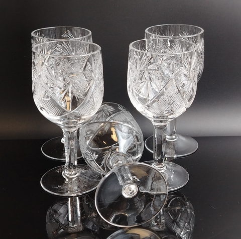 Бокалы набор из 5 штук хрустальные - винтажная роскошь в вашем доме. Высота - 13.5 см. Состояние на фото.