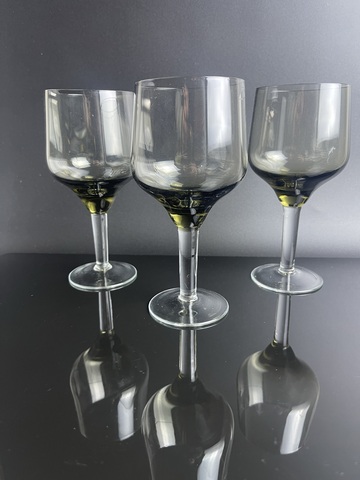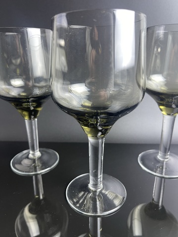 Бокалы набор из 3 штук цветное стекло, дымчатое с зеленым отливом, высота - 14.5 см, винтаж СССР 1960-1990 гг. Сервантное хранение - присутствуют незначительные следы использования