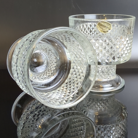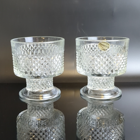 Бокалы под вино набор из 2 штук с резным изящным декором,(объем- ? мл), Богемия, Чехословакия, толстое стекло, алмазная грань, винтажный стиль.