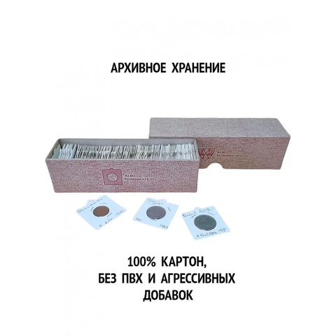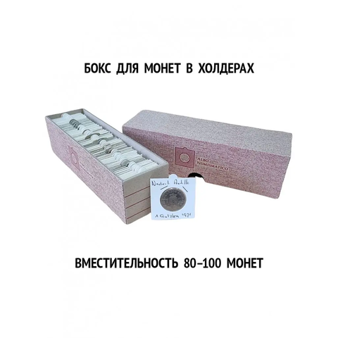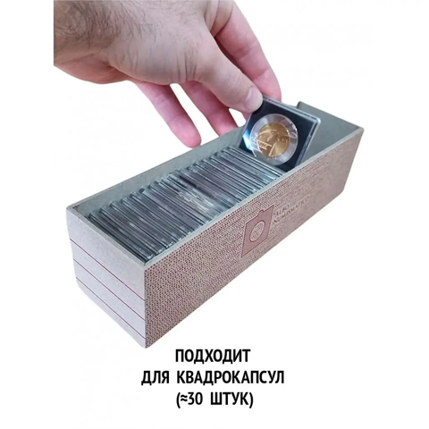 Бокс для хранения монет в холдерах и капсулах - экономичный и компактный способ организовать свою коллекцию. Подходит для любых холдеров (под скрепку / под самоклейку / прозрачные), круглых и квадратных капсул с размерами до 53 мм по ширине и 56 мм по высоте (холдеры с язычком). Вмещает 80-100 монет в холдерах и до 30 монет в капсулах, в зависимости от их толщины. Подвижный фиксатор разделитель предотвратит болтание монет в боксе. Бокс изготовлен из инертных материалов, без ПВХ. Обеспечивает архивное качество хранения коллекции. Внешняя сторона точечно окрашена полимерным составом - не скользит, не стирается, предотвращается загрязнение бокса отпечатками пальцев. С обоих торцов можно сделать надпись ручкой карандашом или маркером.