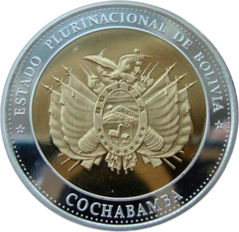 Боливия жетон медаль 2010 Восстание Кочабамба 14 сентября 1810 Франциско де Риверо СЕРЕБРО