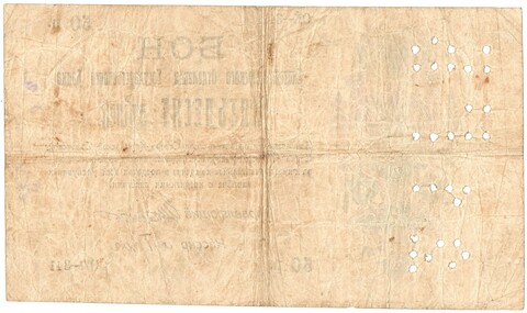 Бон 50 рублей 1918 г. Северо-Кавказская ССР, Екатеринодарское ОГБ - Серия ОК-341 - перфорация