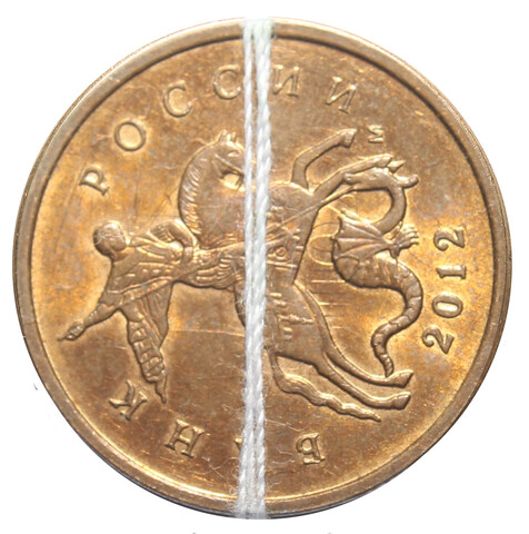 На аверсе изображён Георгий Победоносец верхом на коне, поражающий копьём змея. Данная фигура символизирует победу русского народа над злом. Под передним копытом коня - обозначение монетного двора, на котором отчеканена монета (М). Внизу поля монеты по окружности указан год чеканки - "2012", а вверху - надпись "БАНК РОССИИ", разделённая головой Георгия Победоносца на две части.
