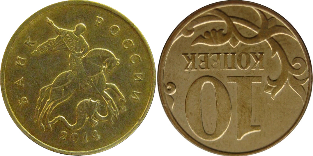На аверсе изображён Георгий Победоносец верхом на коне, поражающий копьём змея. Данная фигура символизирует победу русского народа над злом. Под передним копытом коня - обозначение монетного двора, на котором отчеканена монета (М). Внизу поля монеты по окружности указан год чеканки - "2014", а вверху - надпись "БАНК РОССИИ", разделённая головой Георгия Победоносца на две части.