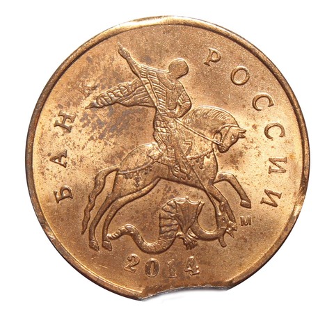 Выкус (или «луна») характеризуется особой лункой по краю монетного поля. При сбое в подаче металлической ленты (если лента сместилась не полностью) под удар попадает уже вырубленный кружок. Для определения подлинности данного вида брака надо обратить внимание на кант. Он ближе к лунке сходит на нет, не теряя при этом полированную гладь. В саму лунку идеально вставляется аналогичная монета. Если при вставке такой же монеты виден зазор, а кант, сходя на нет, изобилует подшлифованными царапинами, то это уже ручная работа неведомых умельцев, а не технологический брак. Знак подлинности часто появляется в процессе чеканки, когда из-за нехватки металла на противоположной стороне монеты происходит истончение канта («антивыкус»).