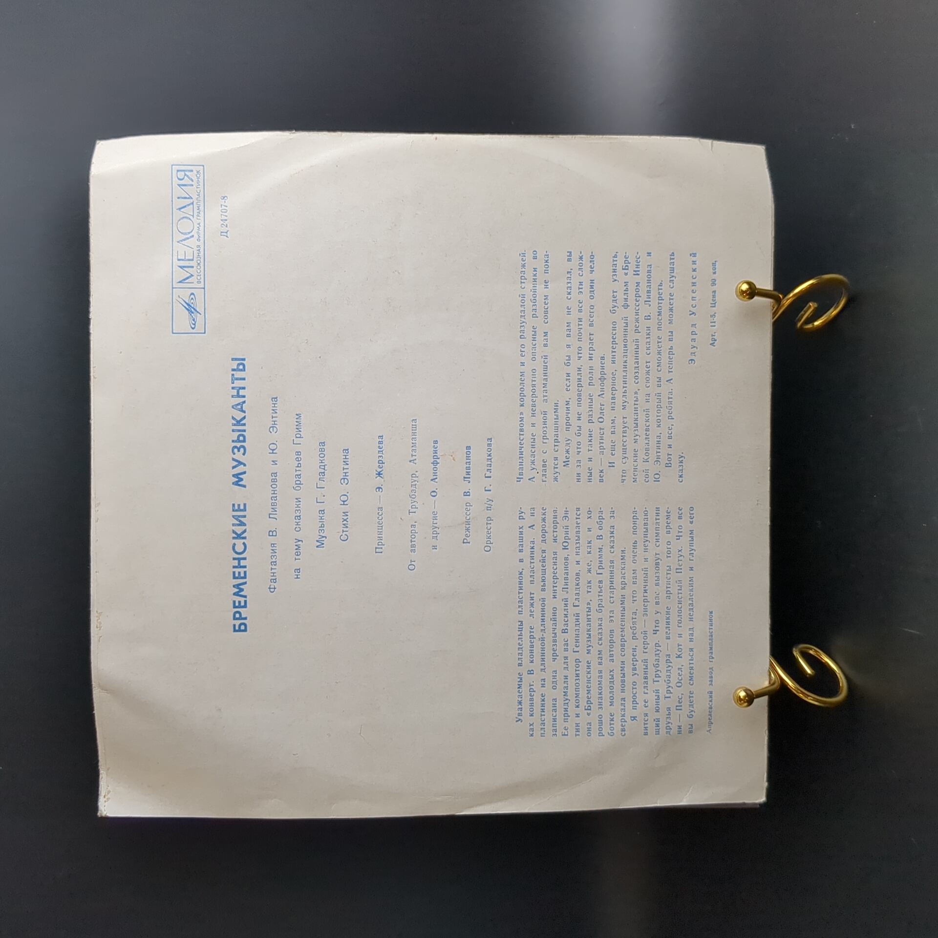 Бременские музыканты. Музыкальная сказка В. Ливанова и Ю. Энтина. Виниловая пластинка 10 дюймов. Мелодия СССР