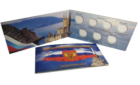 Буклет (альбом) для монет и боны "Крымский полуостров" ( Крымские операции, 10 р. Крым+Севастополь, бона) 7 ячеек. Картон. (СОМС)