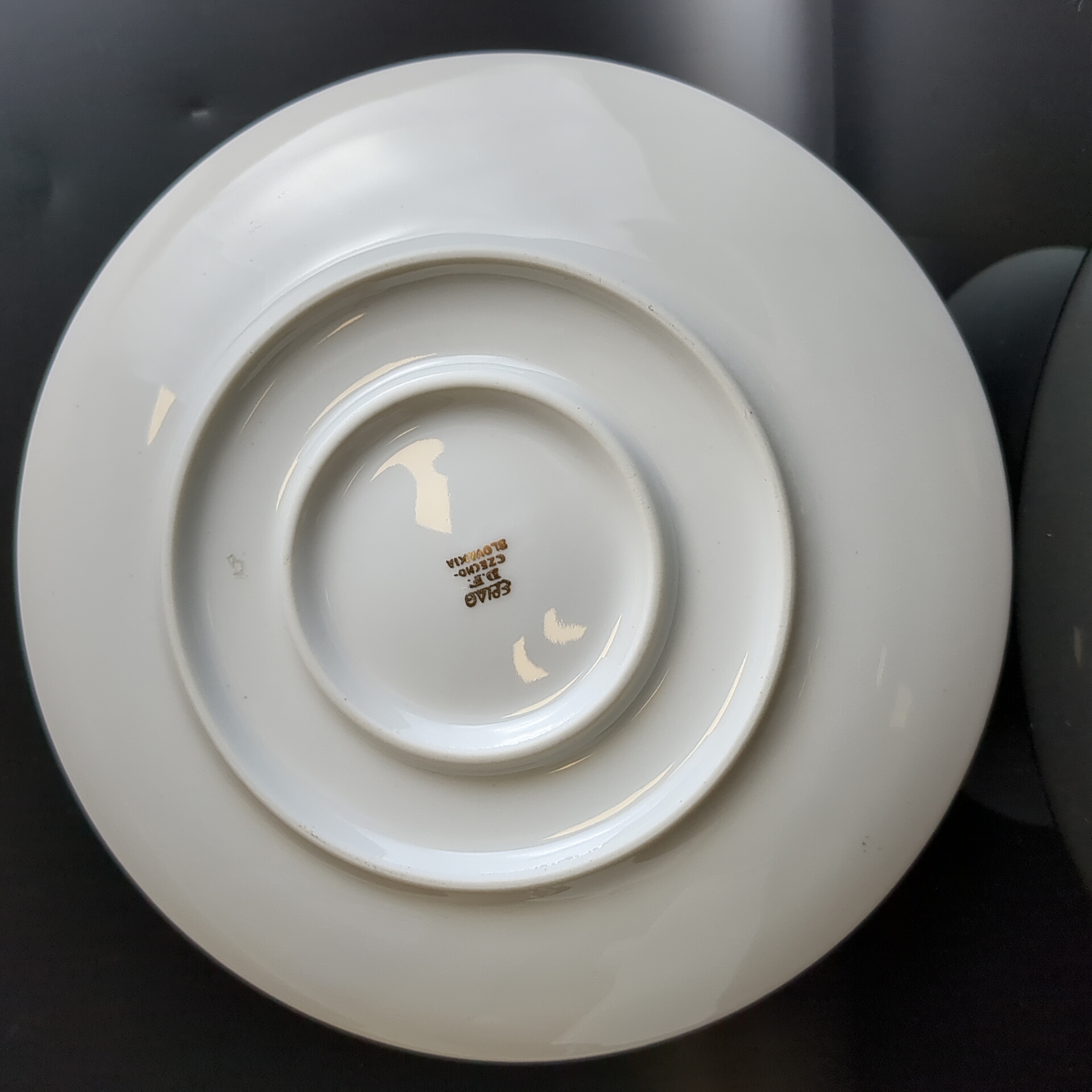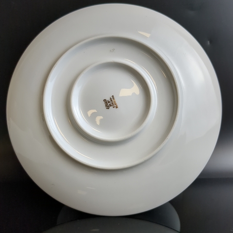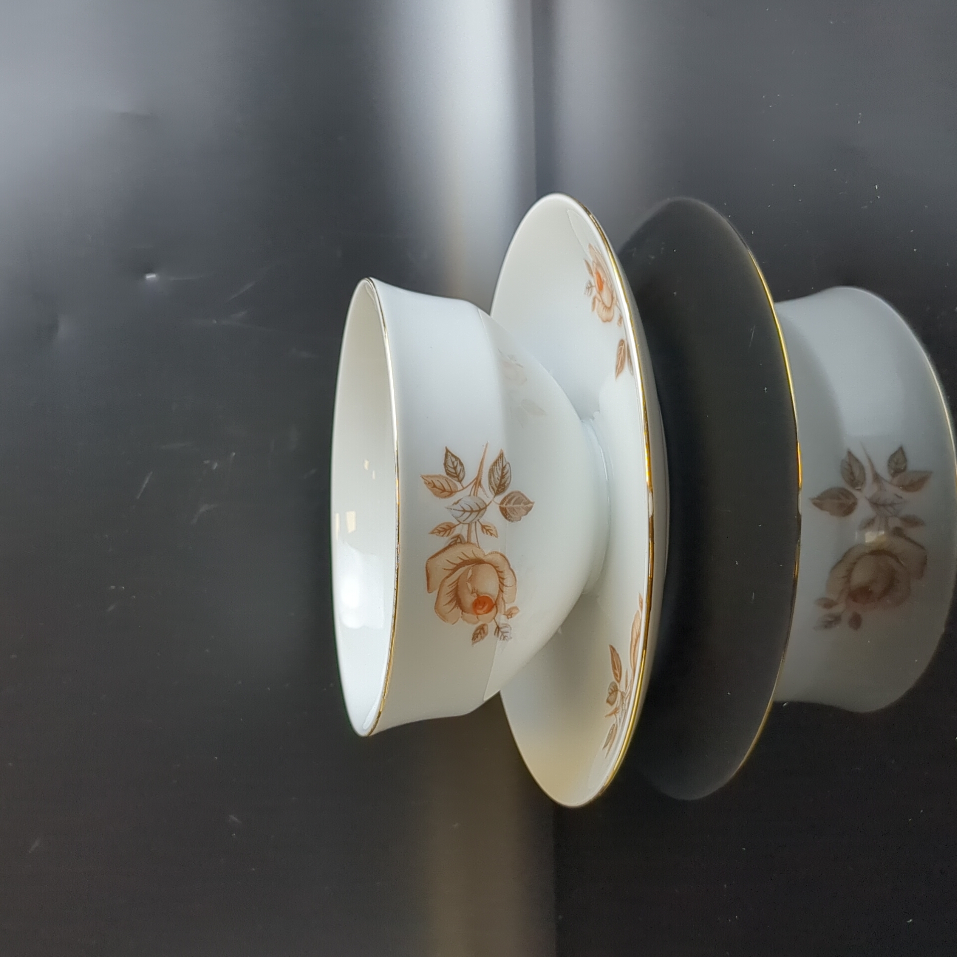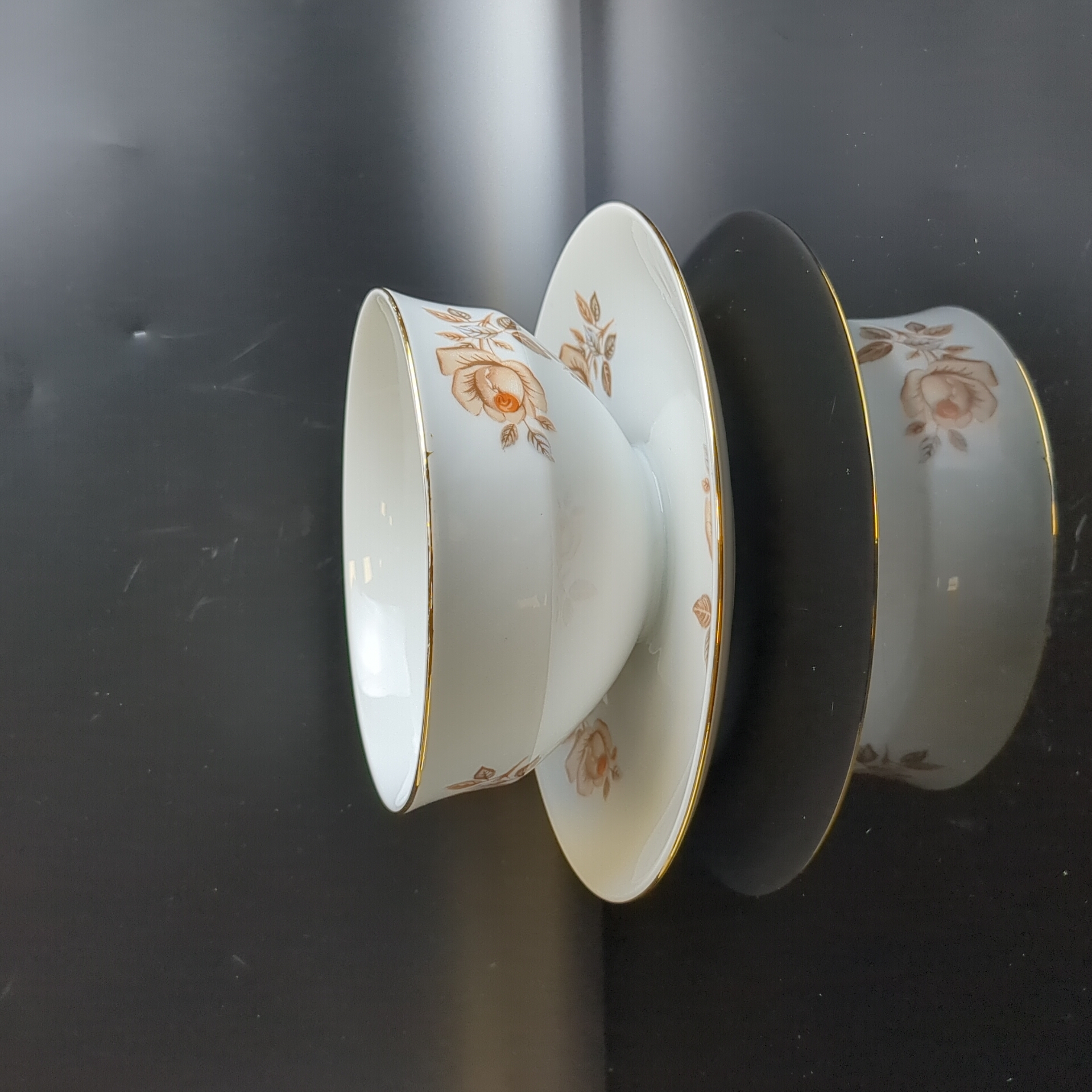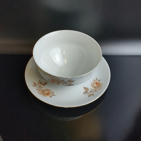 Бульонница цельная с блюдцем фарфоровая роспись, из сервиза "Коралловая роза", золочение, EPIAG D.F Чехословакия, винтаж времен СССР 1960-1990 гг.