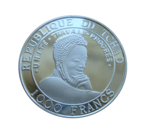 Чад 1000 франков 2001 Корабль парусник Navire de guerre arabe Арабский военный корабль СЕРЕБРО