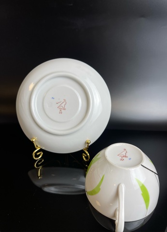 Чайная пара фарфор клеймо Дулево ручная роспись сервиз "Ивушка", позолота, винтаж СССР 1960-1990 гг. Диаметр блюдца - 14 см, диаметр чашечки - 9 см. Сервантное хранение, незначительные следы использования - чуть стерта позолота и сколы глазури по верху чашечки, состояние на фото