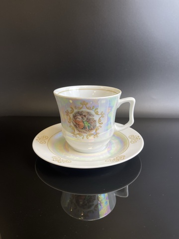 Чайная пара фарфор перламутр из набора "Мадонна",клеймо Graf Von Henneberg Porzellan, 1777 Jlmenau, Германия, ГДР винтаж 1973-1977 гг.