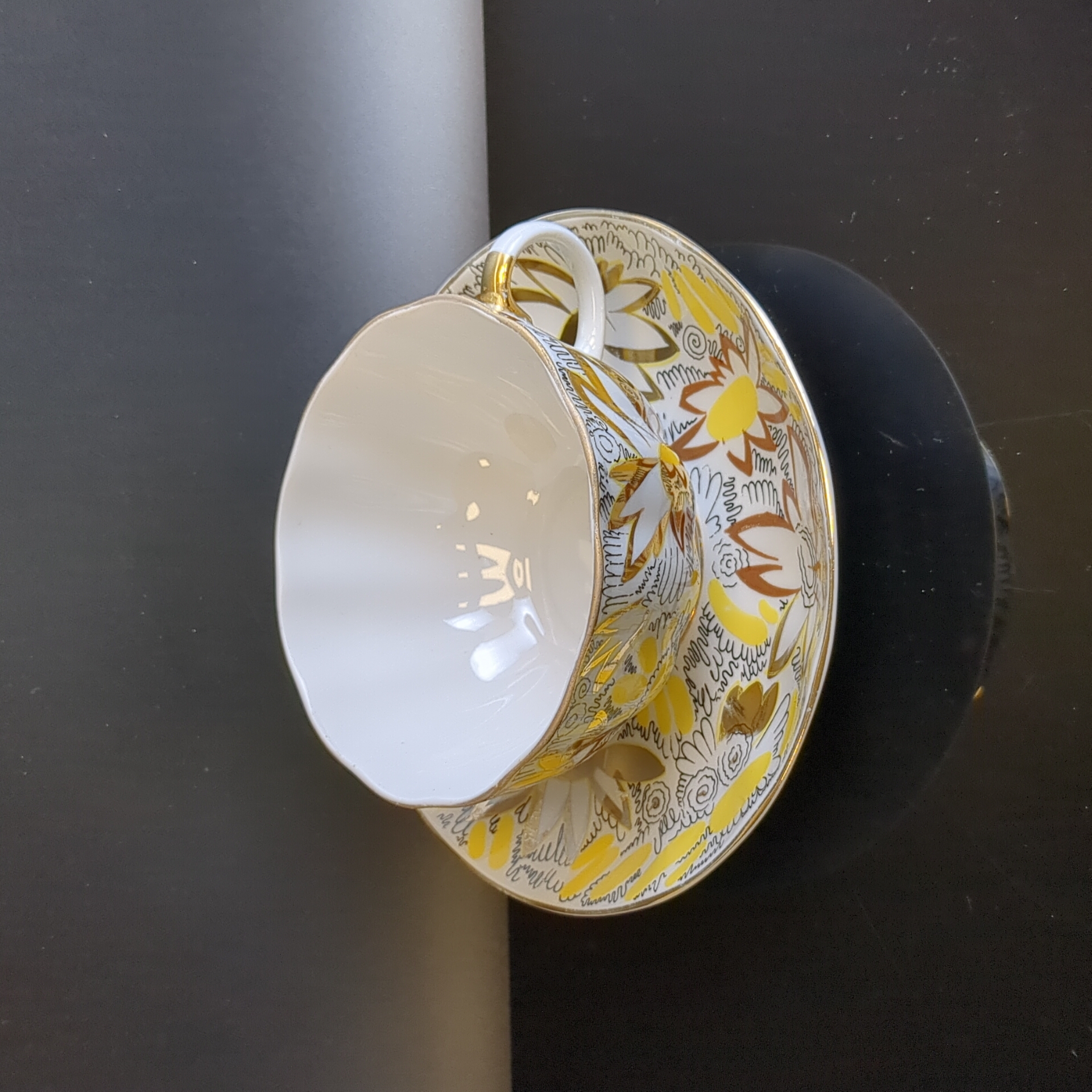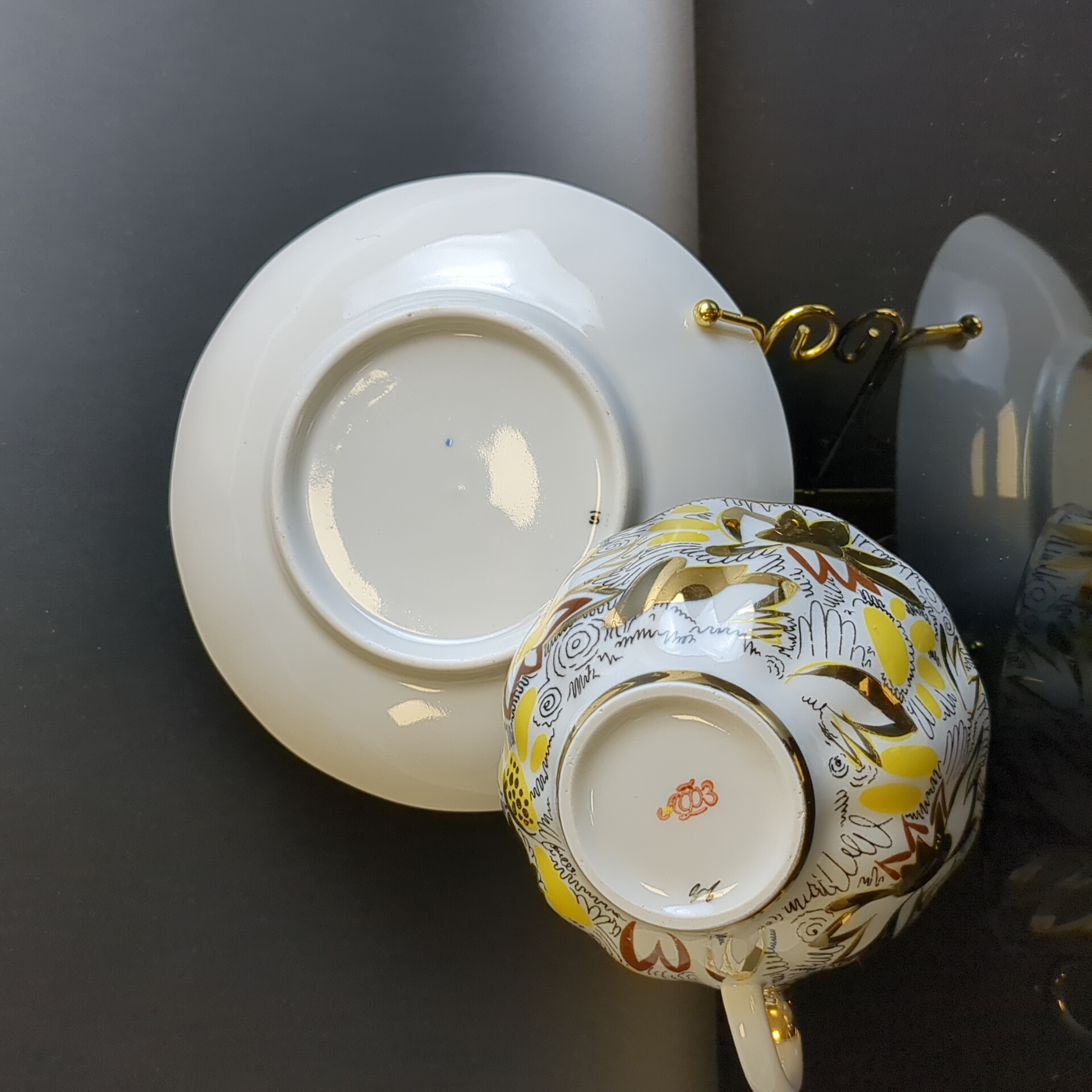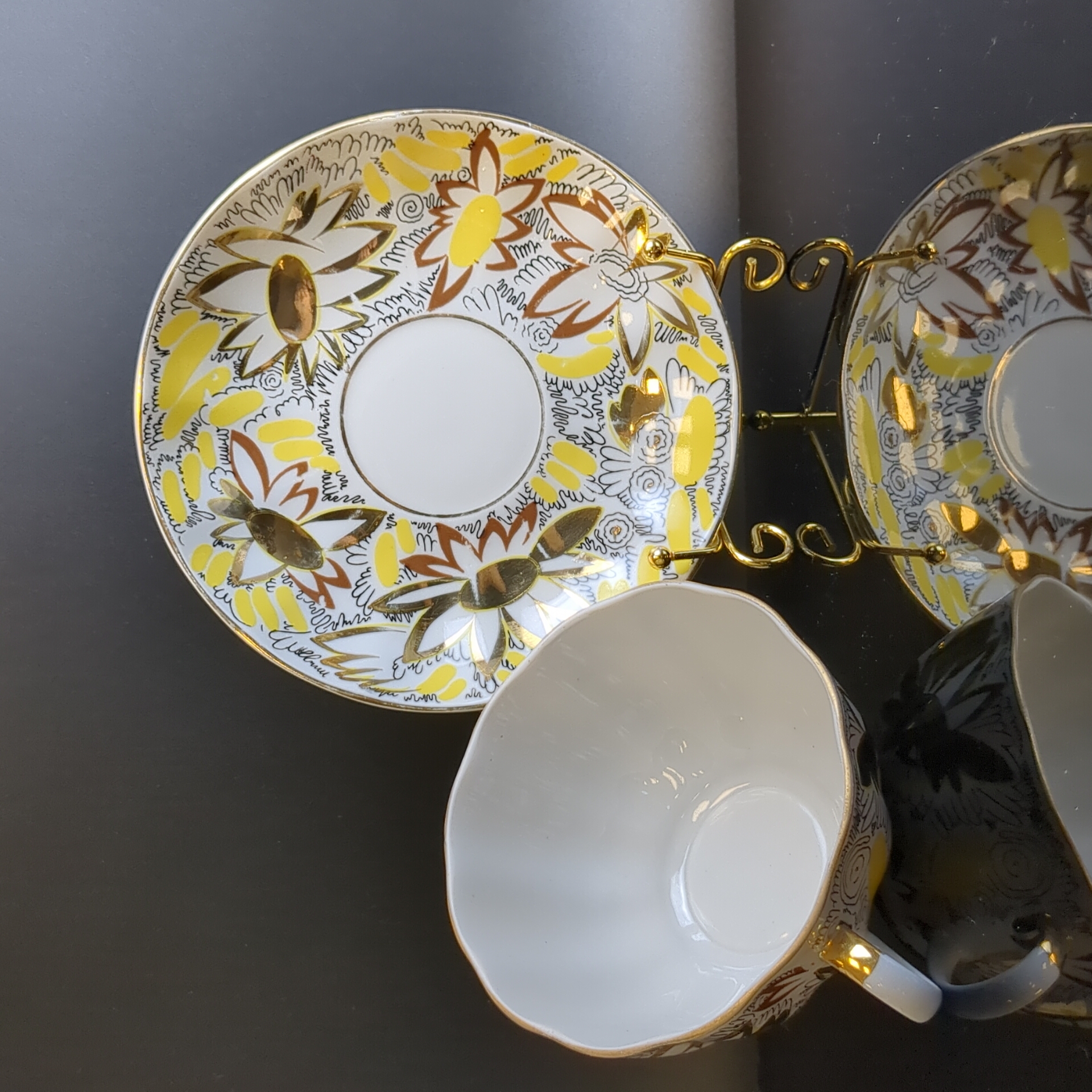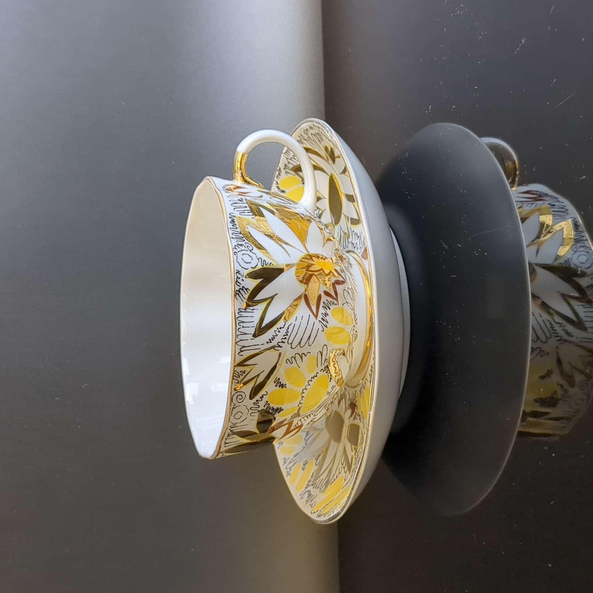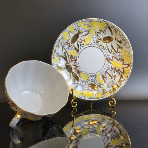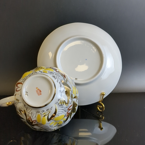 Изящная чайная пара Золотые ромашки от легендарного ЛФЗ – это возможность окунуться в атмосферу советского времени! Элегантные тюльпаны, изящное золочение от автора Л.И.Григорьевой подарят вашему столу истинно винтажную изысканность. Такая чайная пара станет украшением любого интерьера.
