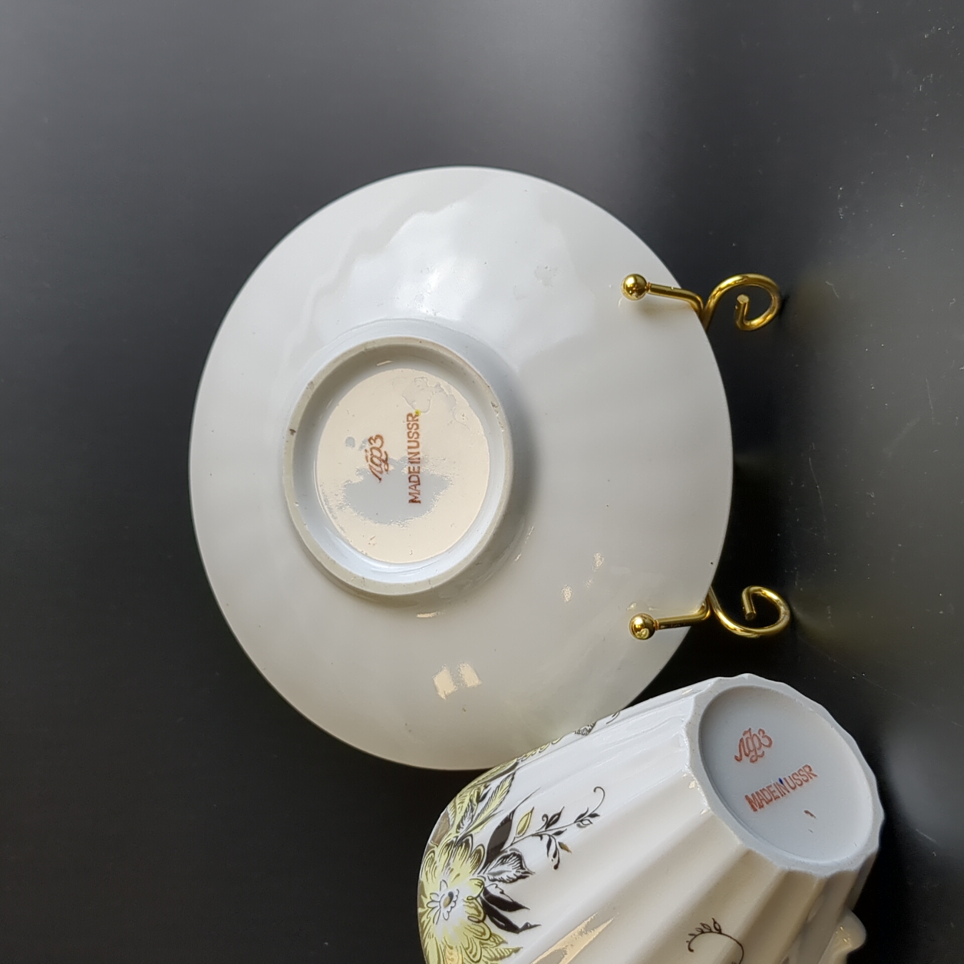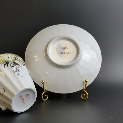 Чайная пара ЛФЗ - "Желтые цветы" - форма "Лучистая" - Тонкий фарфор - СССР