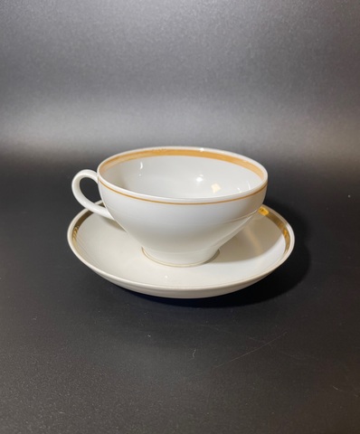 Чайная пара МТ министерство торговли Дулево СССР, фарфор, золочение