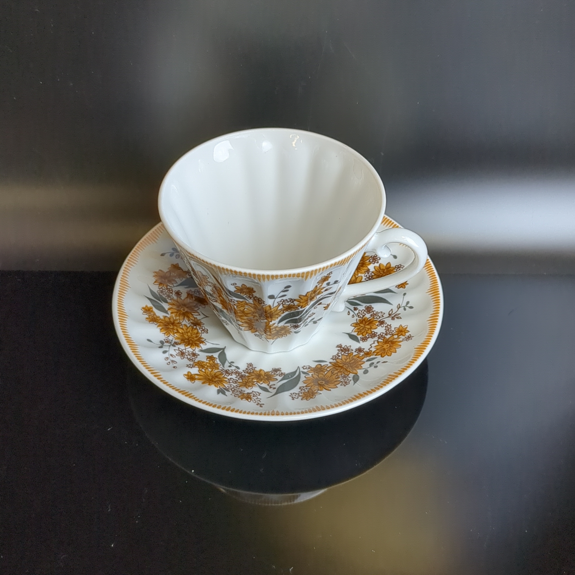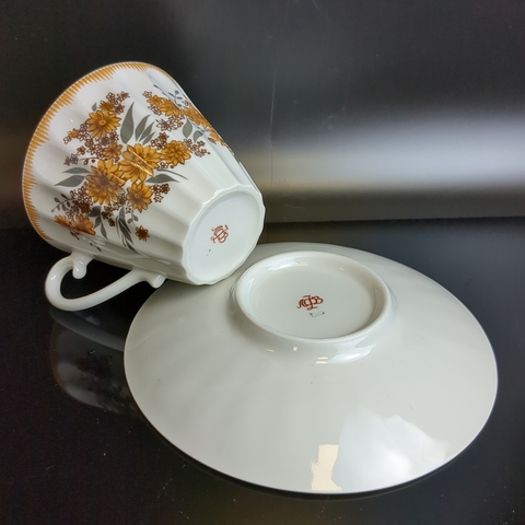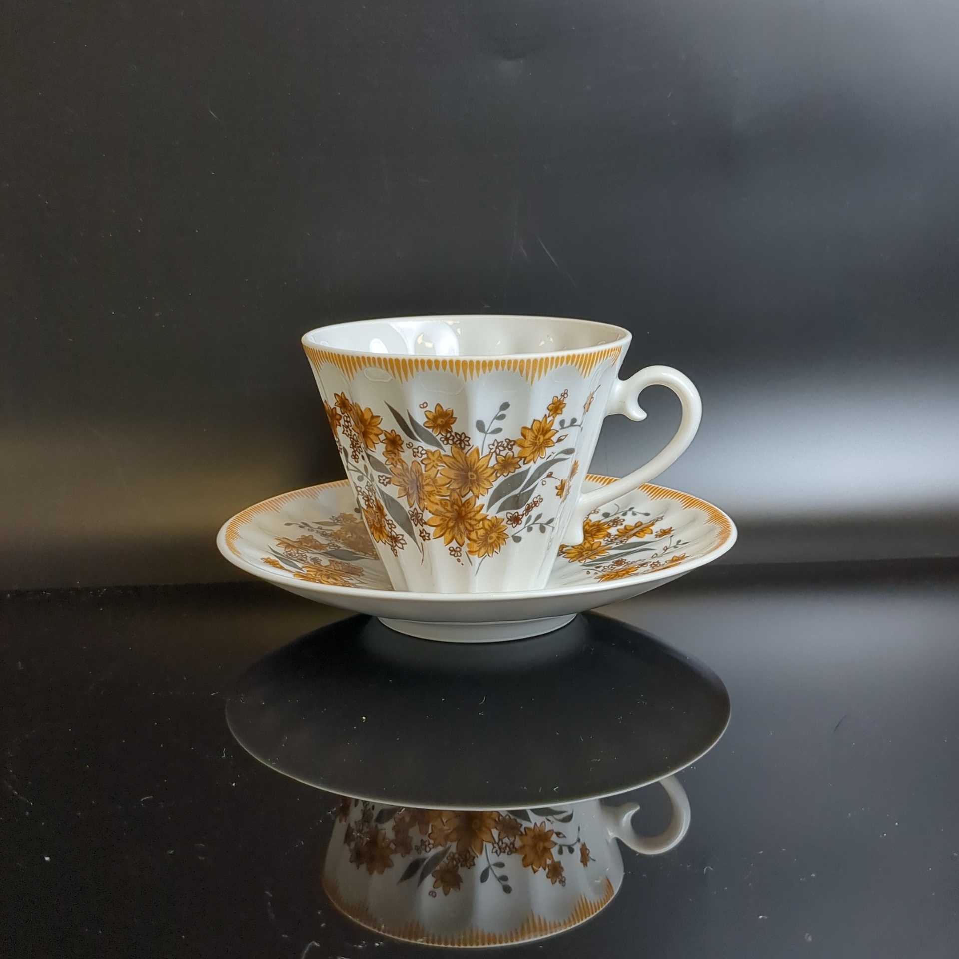 Чайная пара на одну персону ЛФЗ фарфор, цветочный декор, осенние цветы, форма "Лучистая", винтаж СССР1986-1991 гг. Ленинградский Фарфоровый Завод. Состояние на фото