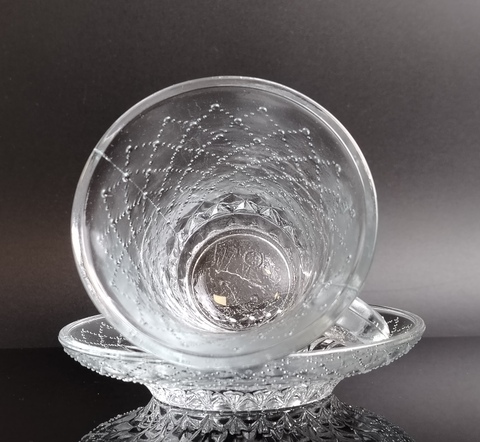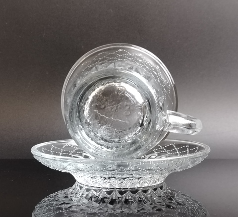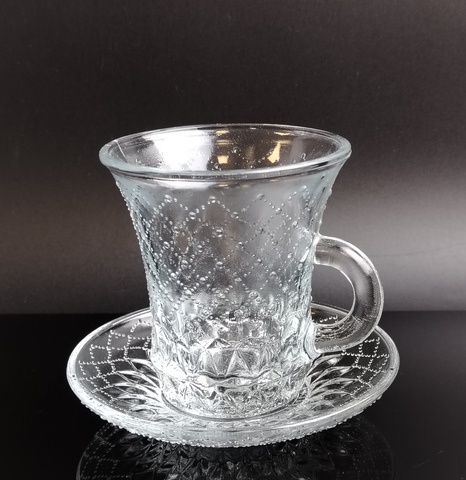 Чайная пара прозрачное стекло с узором, СОЗ, Опытный стекольный завод, винтаж СССР 1970-1990 гг. Состояние на фото