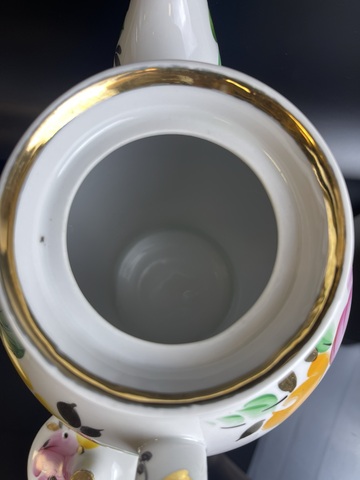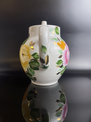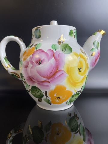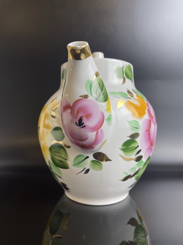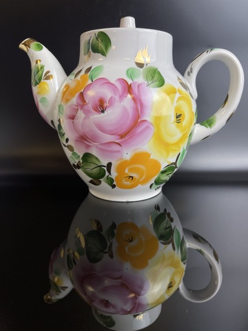 Чайник фарфоровый Богатырь расписной клеймо Хайта, Хайтинкский фарфоровый завод, трактирный чайник 2.7 л.СССР 1960-1990 гг. Высота чайника - 20 см, ширина - 26 см. Присутствуют следы использования, состояние на фото