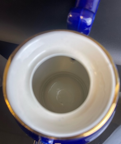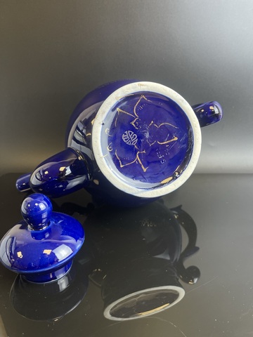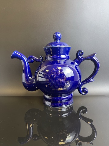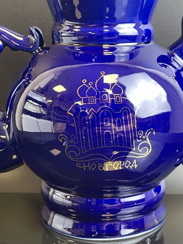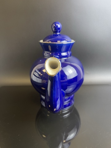 Чайник фарфоровый заварочный клеймо Новгородский ФЗ "Возрождение", кобальт, позолота, винтаж СССР 1970-1990 гг. Высота - 21 см, ширина - 26.5 см.