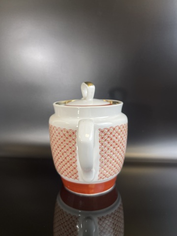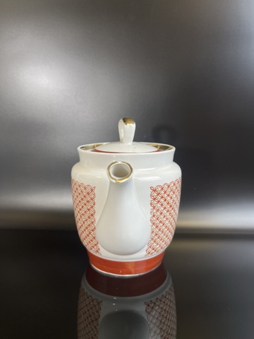 Чайник заварочный фарфоровый клеймо Бориславский ФЗ, позолота и узоры, винтаж СССР 1970-1990 гг. Высота- 13.5 см.