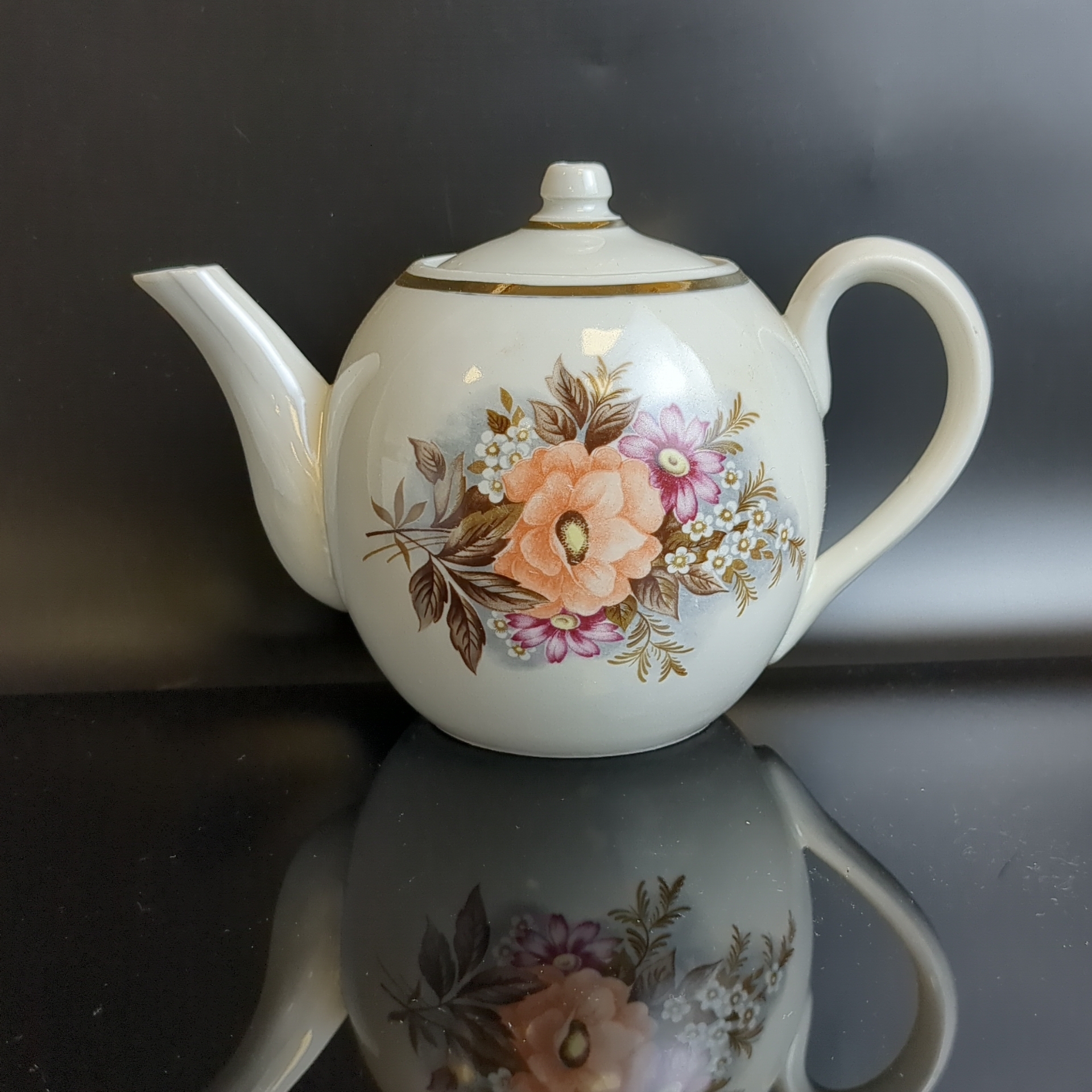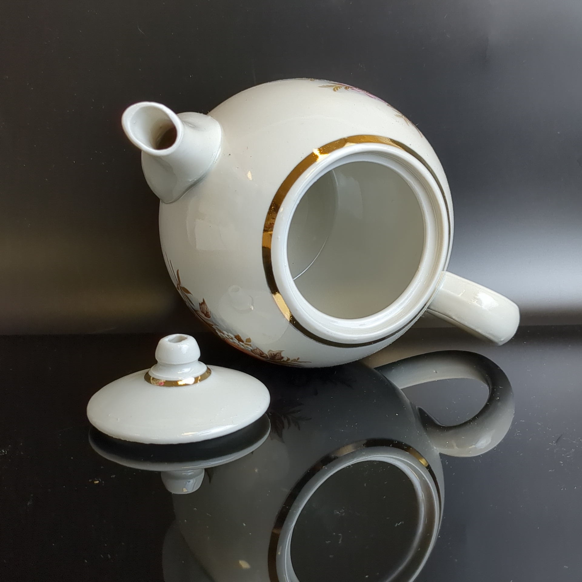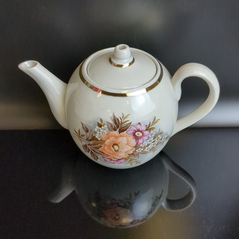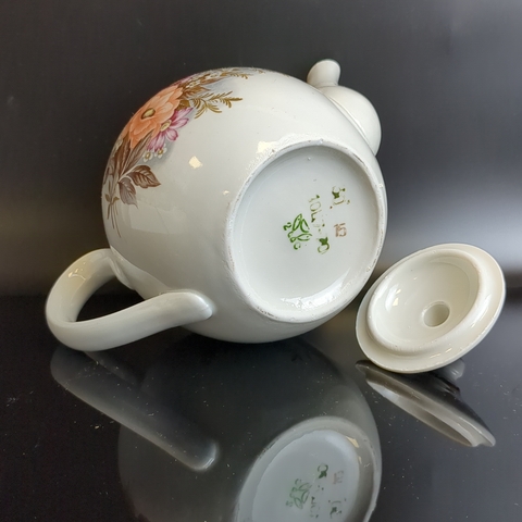 Чайник заварочный фарфоровый клеймо Первомайский ФЗ (Песочное), цветы, (объём -? мл), винтаж СССР 1976-1991 гг.