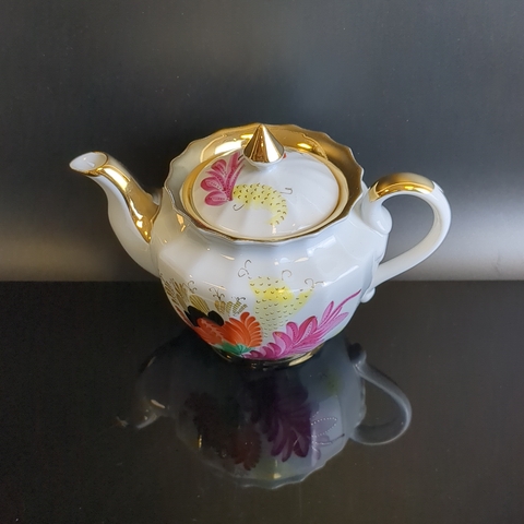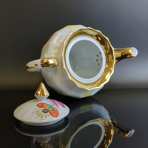 Чайник заварочный для чаепития от старинного фарфорового завода "Вербилки" - это настоящее произведение искусства. Ее красота поражает воображение, а эстетика и мастерство исполнения поражают своей изысканностью. Тончайший белоснежный фарфор, украшенный тонкими линиями ручной росписи красками и золотом, выполнен в классической форме "Ампир". 24-каратная позолота, щедро украшающая отводку, придает изделию особую роскошь. Сочетание сияния золота, блеска фарфора и яркой ручной росписи создает поистине незабываемое впечатление.