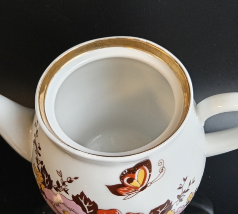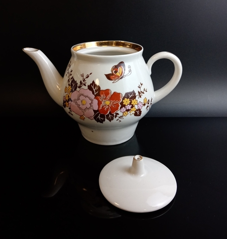 Чайник заварочный фарфоровый шикарная роспись цветов, позолота, Прокопьевский ФЗ, винтаж СССР 1970-1991 гг. Высота - 13 см. Присутствуют следы использования - состояние на фото