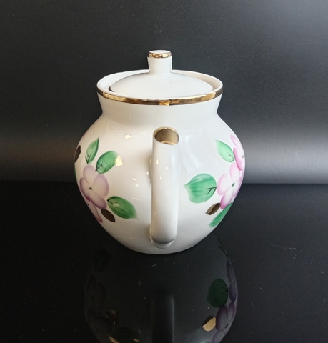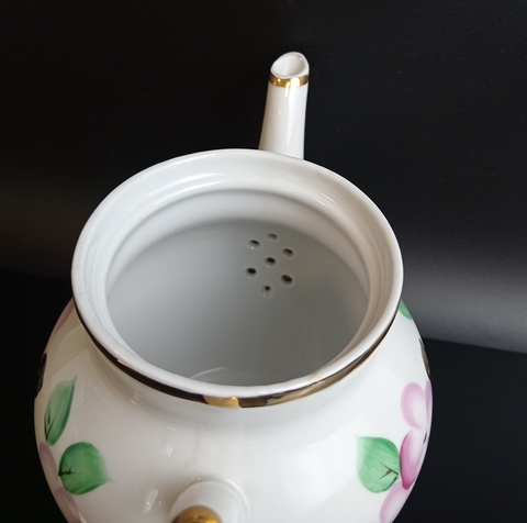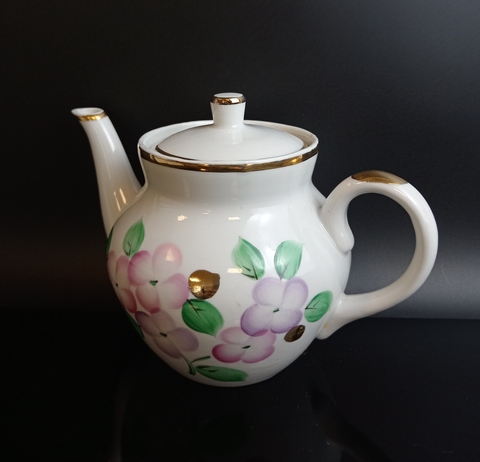 Чайник заварочный Кузяевский ФЗ, фарфор, роспись цветы, позолота, винтаж СССР 1970-1991 гг. Высота - 13.5 см. Присутствуют следы использования - состояние на фото