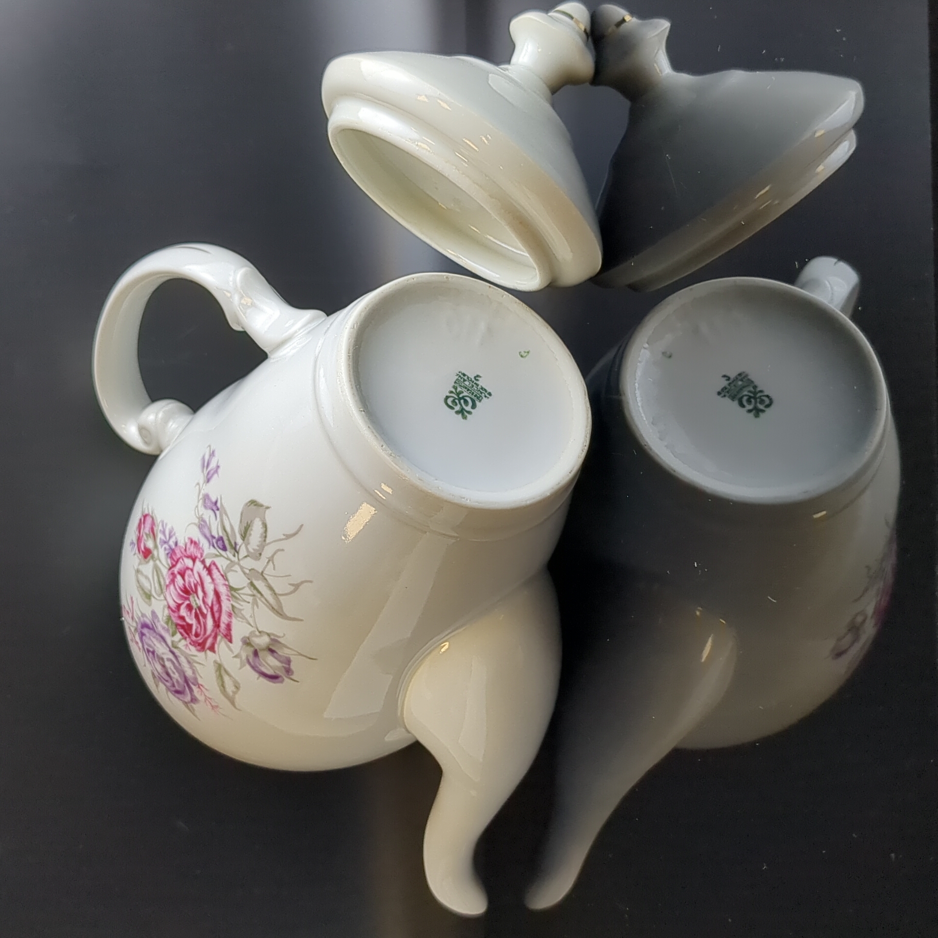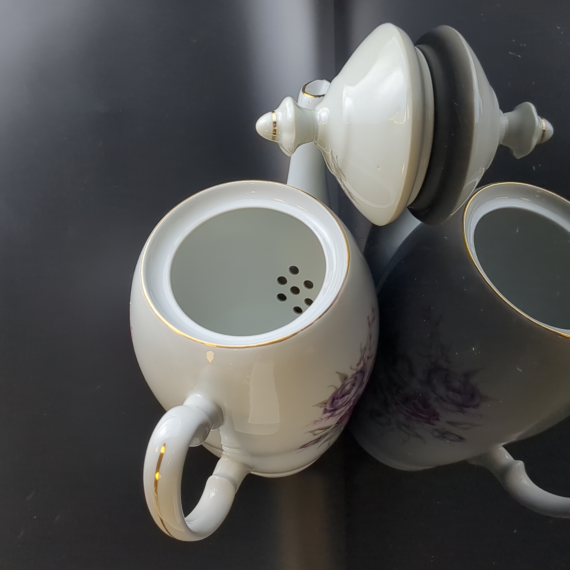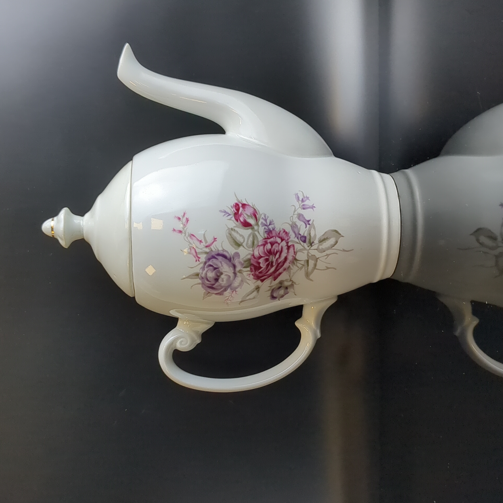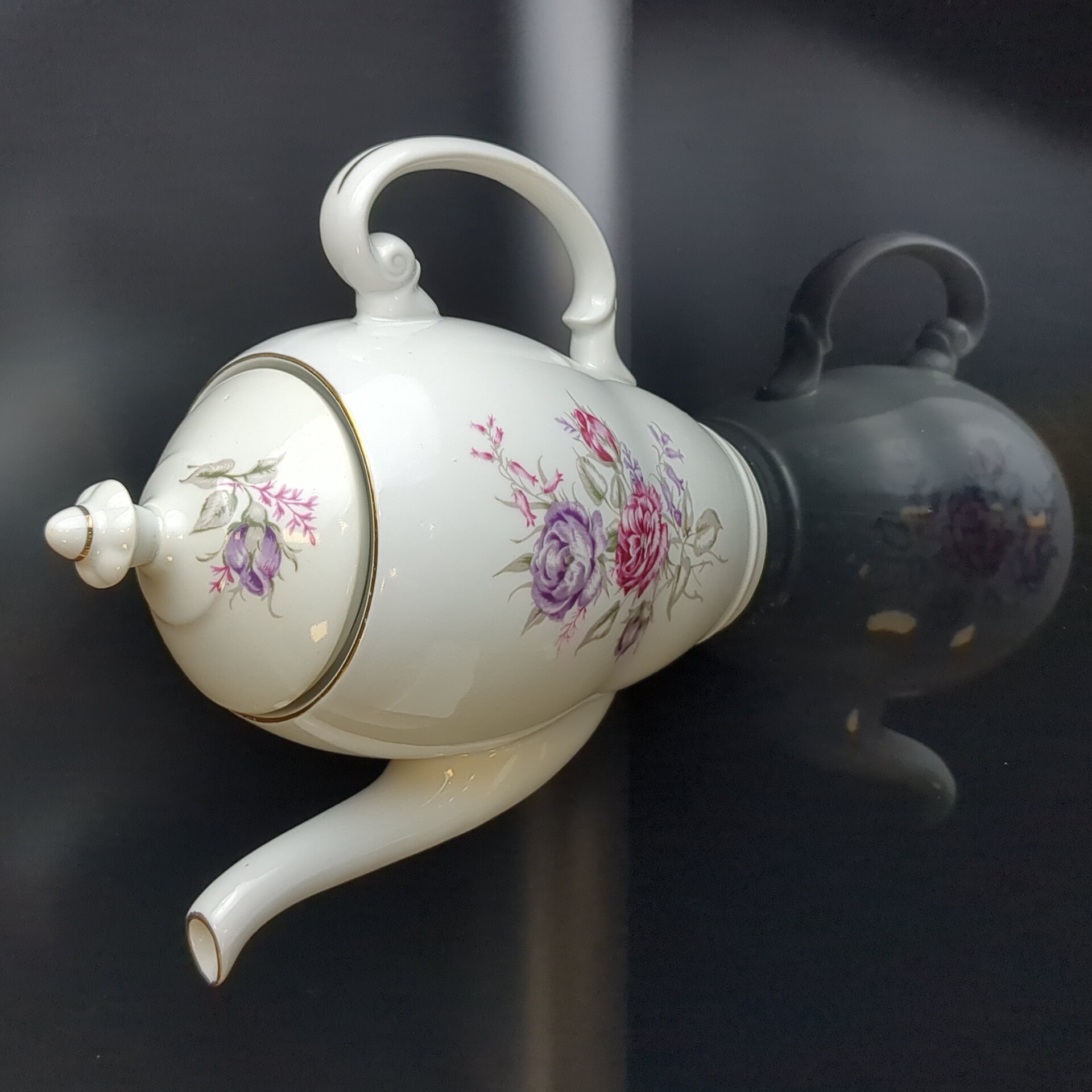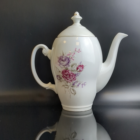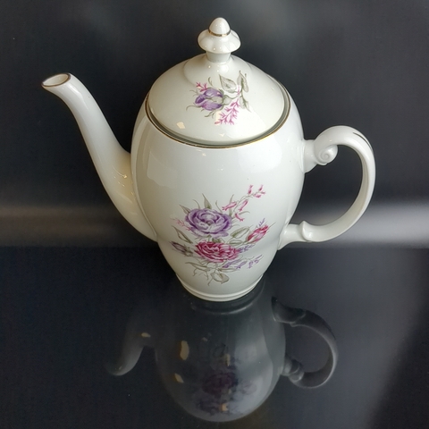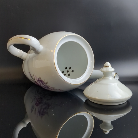Чайник заварочный с изящными цветами, Wloclawek porcelana, золочение, винтаж Польша, времён СССР 1967-1973 гг. Высота - 23 см. Состояние на фото