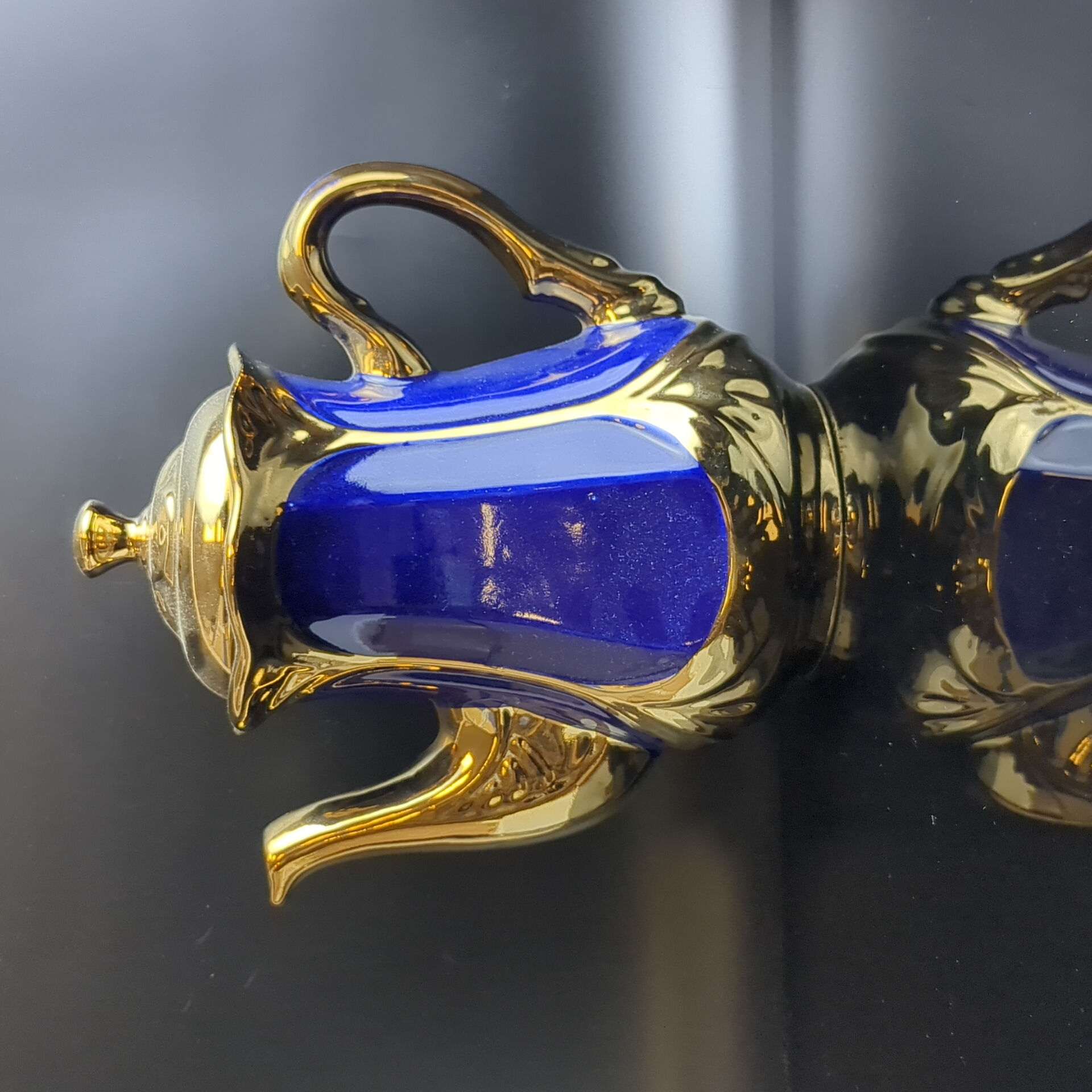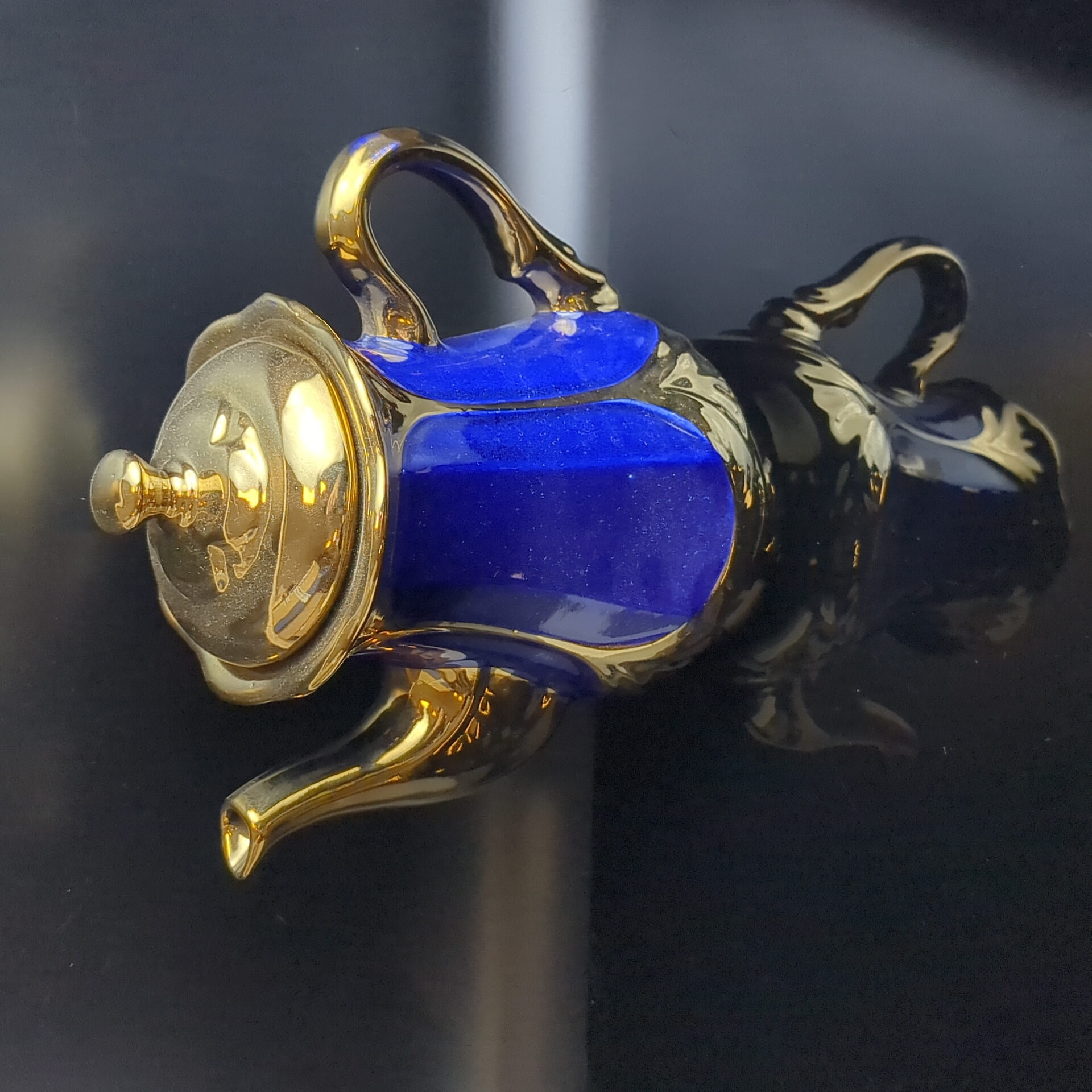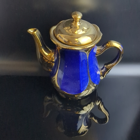 Чайник заварочный "Жар-птица" кобальт, позолота, изящная роспись, высота - 22 см., винтаж СССР 1970-1990 гг.