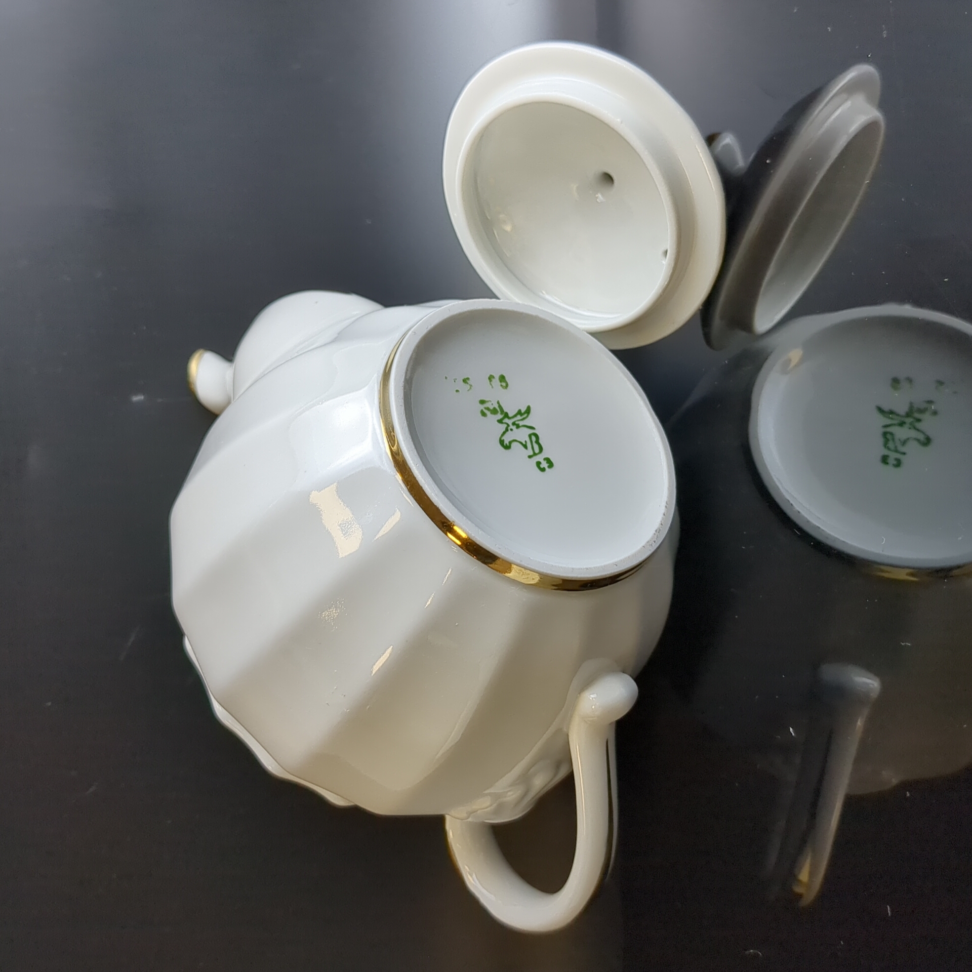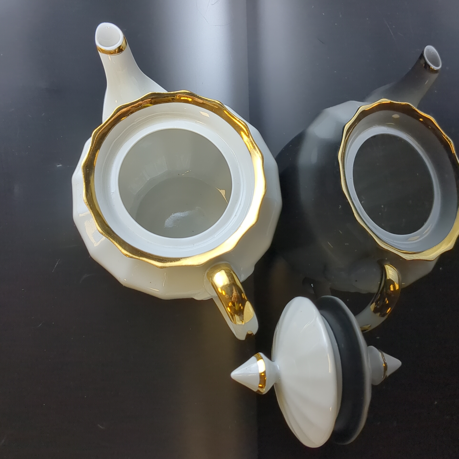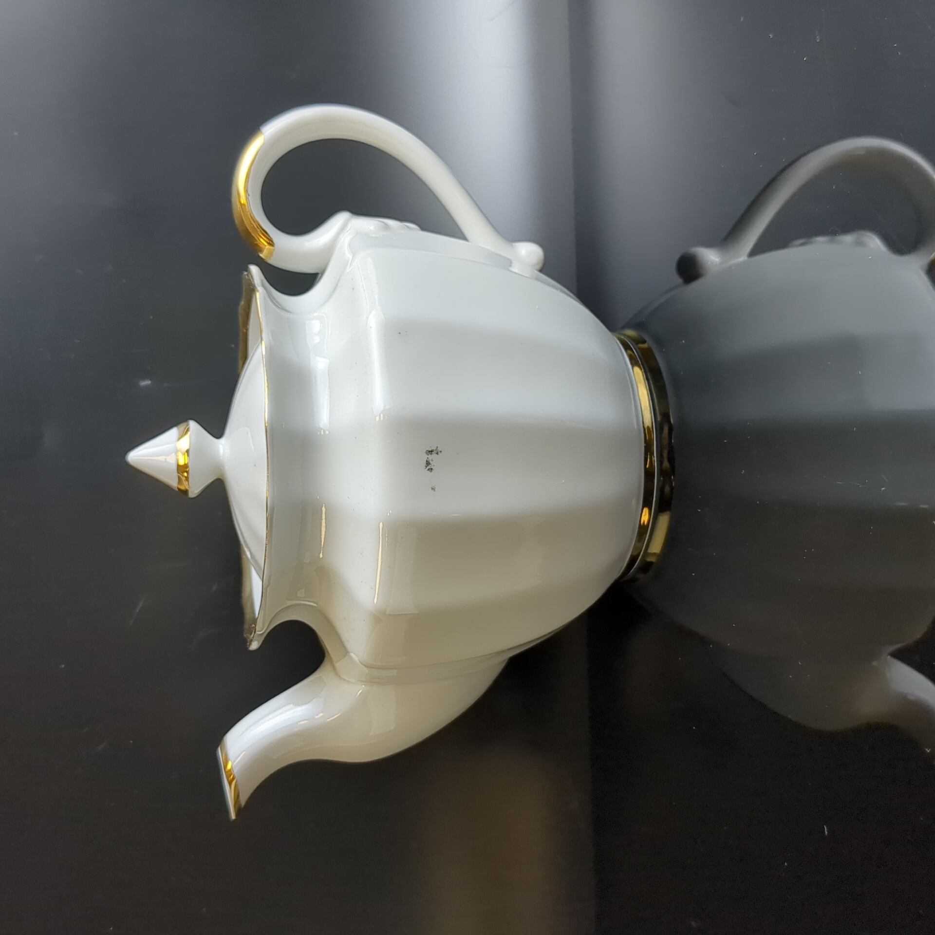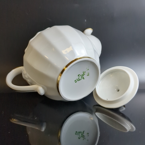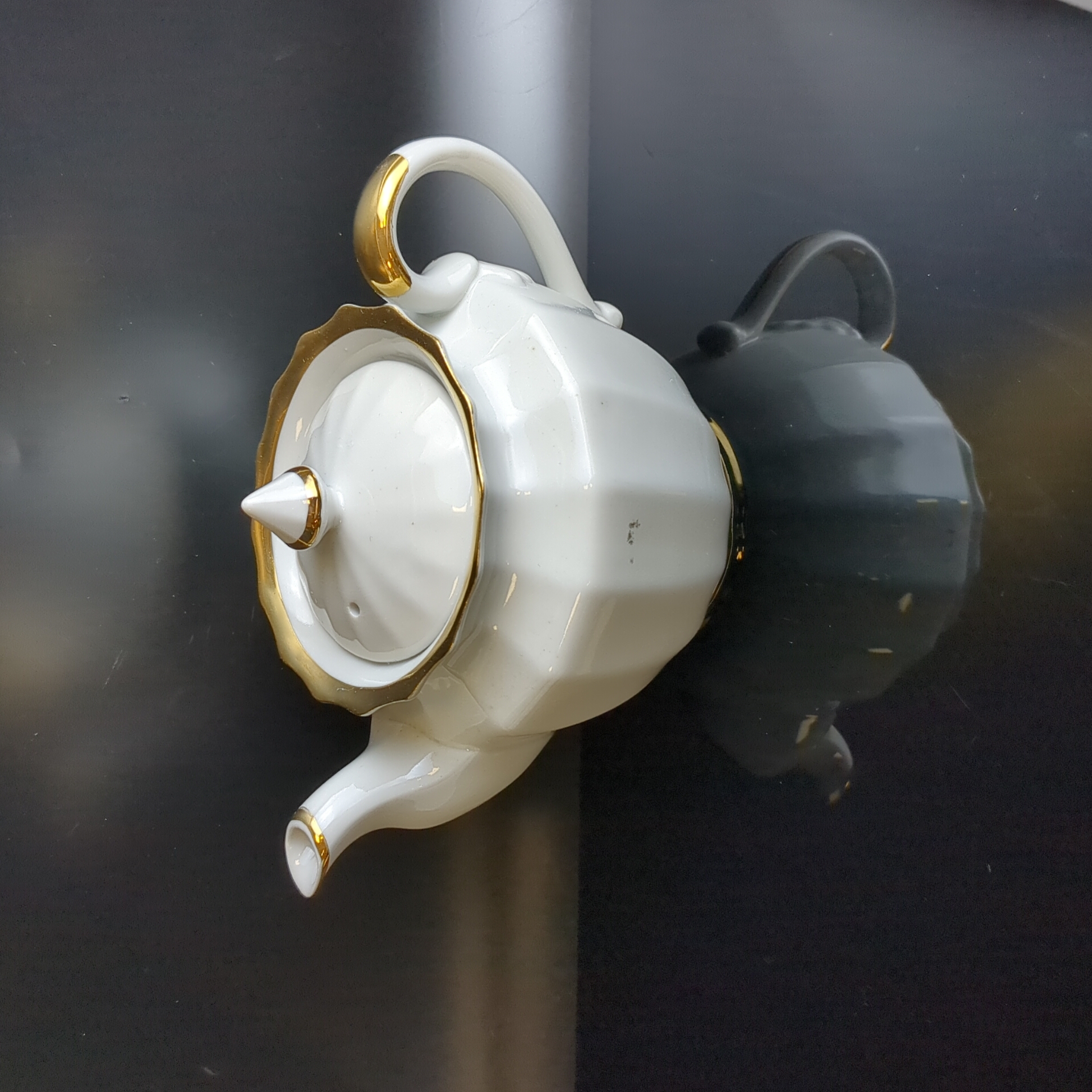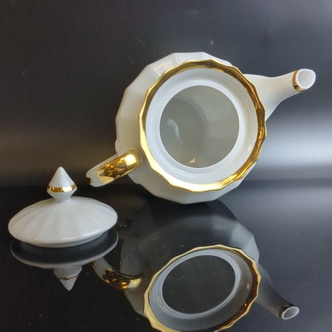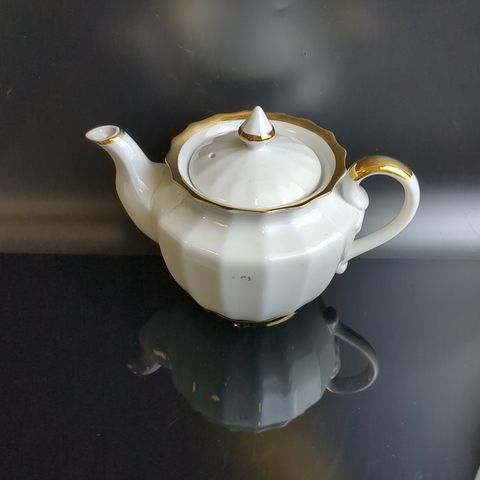 Чайник заварочный "Золотая лента" фарфоровый, Дмитровский завод Вербилки, позолота, винтаж СССР 1965-1991 гг. Высота - 14 см. Состояние на фото