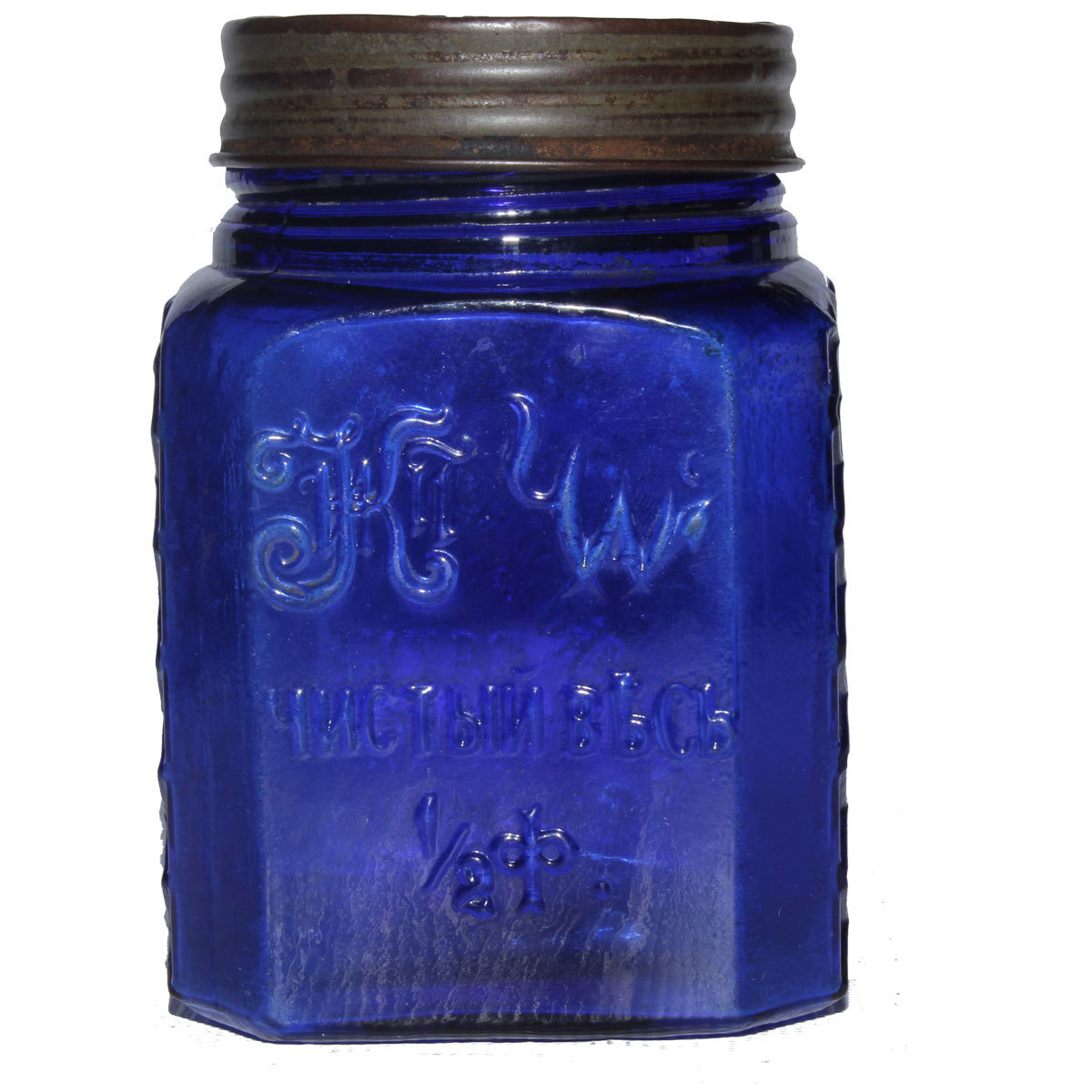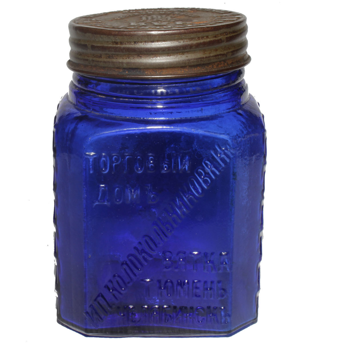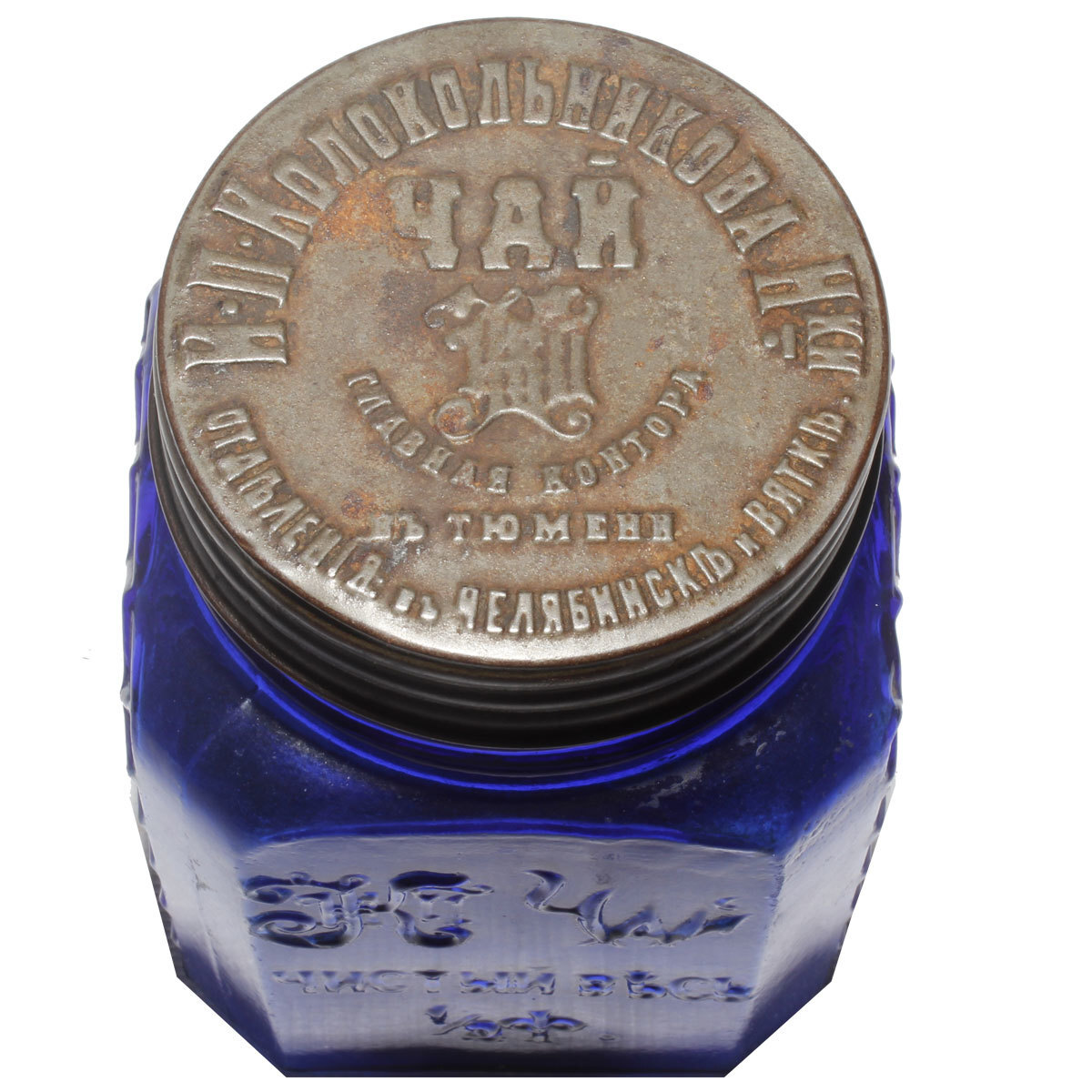 Чайница Торговый Домъ И.П.Колокольникова Нъ синяя стекло
