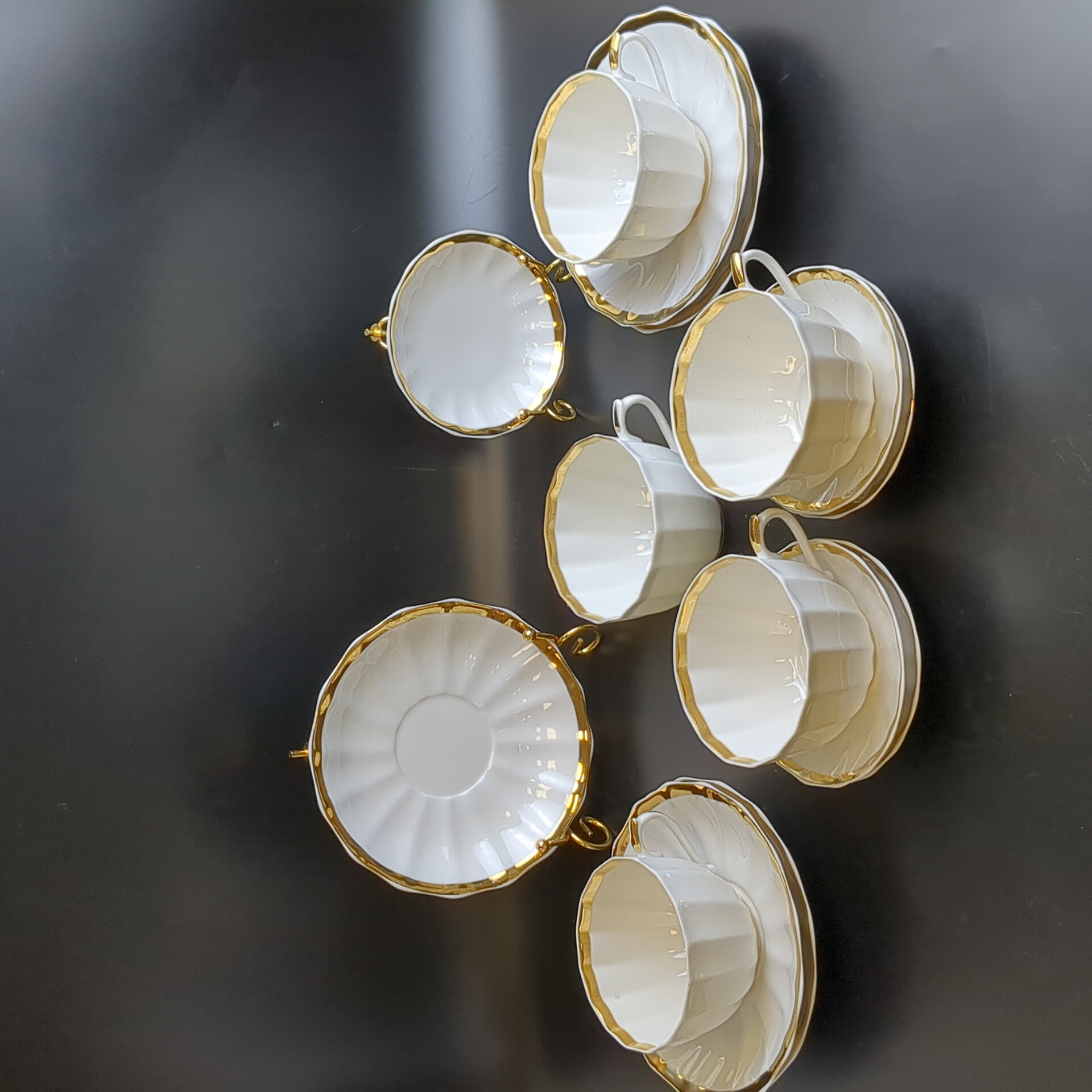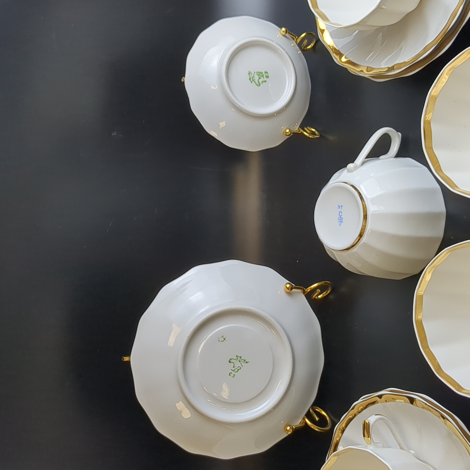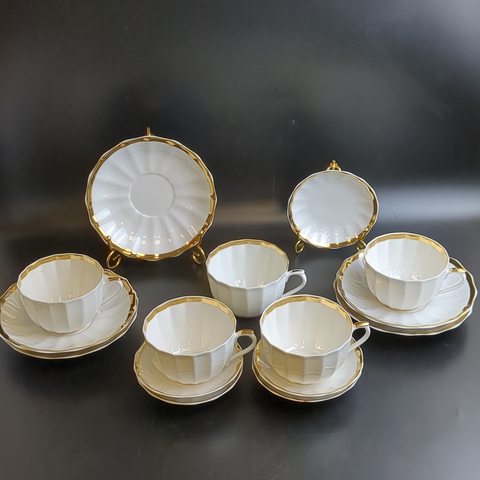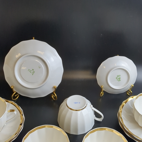 Чайно-кофейное трио на 5 персон, 15 предметов, "Золотая лента" фарфоровая, Дмитровский завод Вербилки, позолота, винтаж СССР 1965-1991 гг. Состояние и комплектация на фото