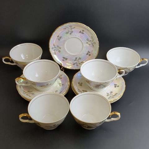 Фарфоровые чайные пары на 6 персон из сервиза "Мадонна" Германия, ГДР : винтажная роскошь в вашем доме! Состояние на фото, присутствуют следы бытования, стерт люстр на блюдцах.