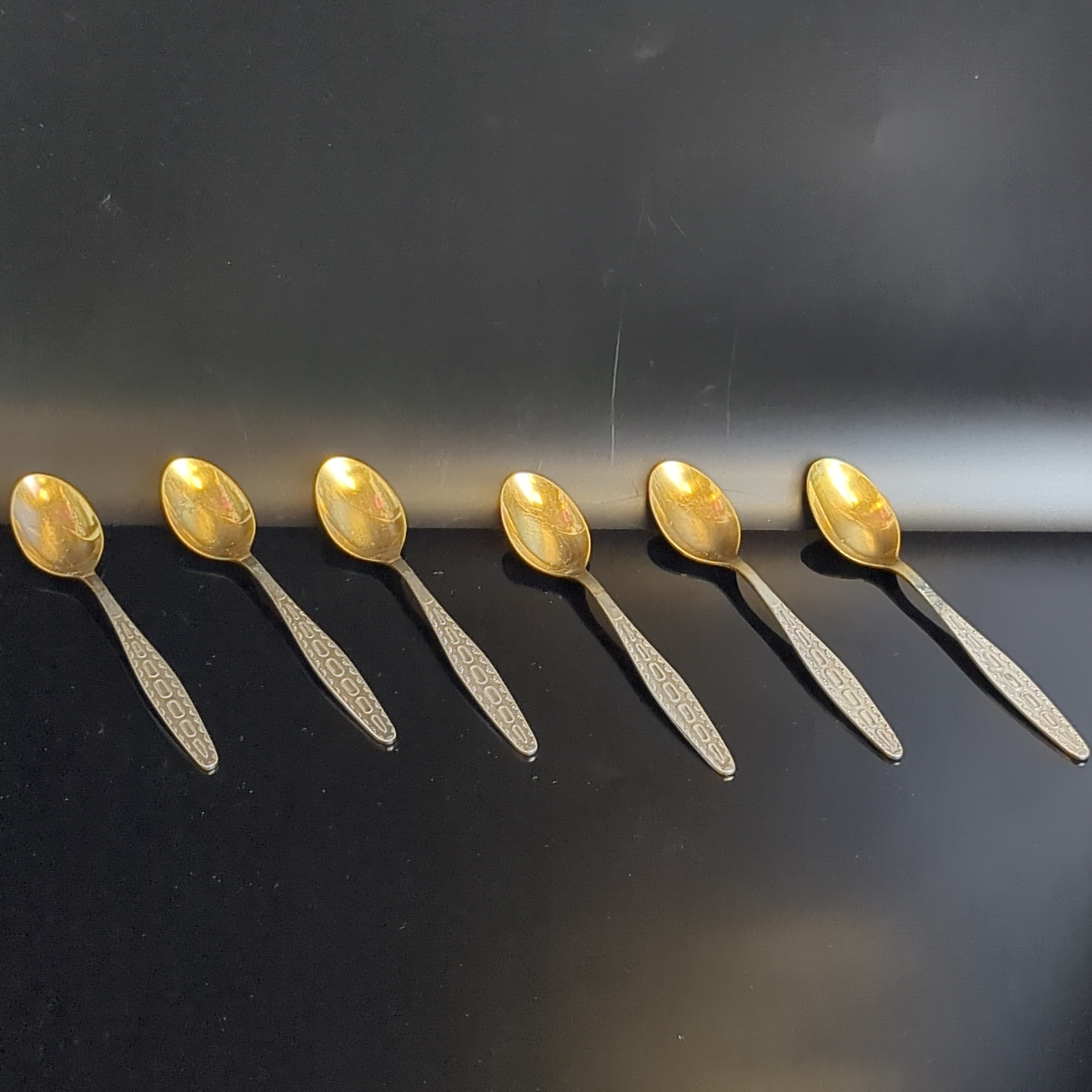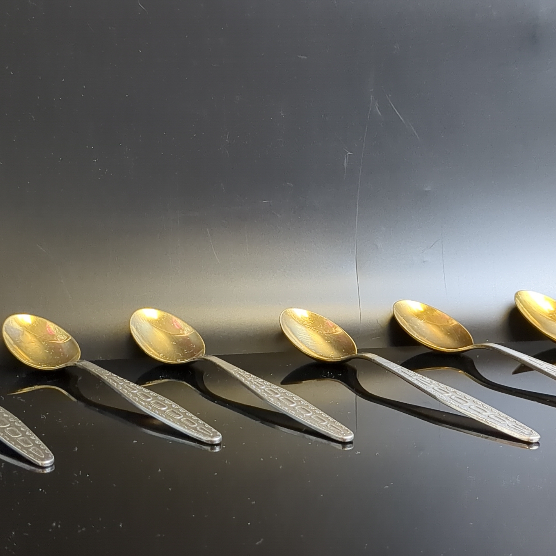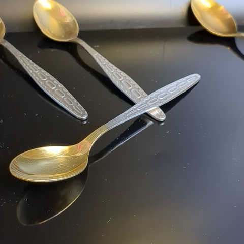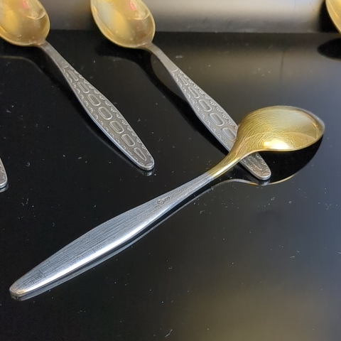 Чайные ложки набор из 6 штук клеймо мНЦ, Кольчугинский завод цветных металлов, золочение, винтаж СССР 1960-1990 гг.