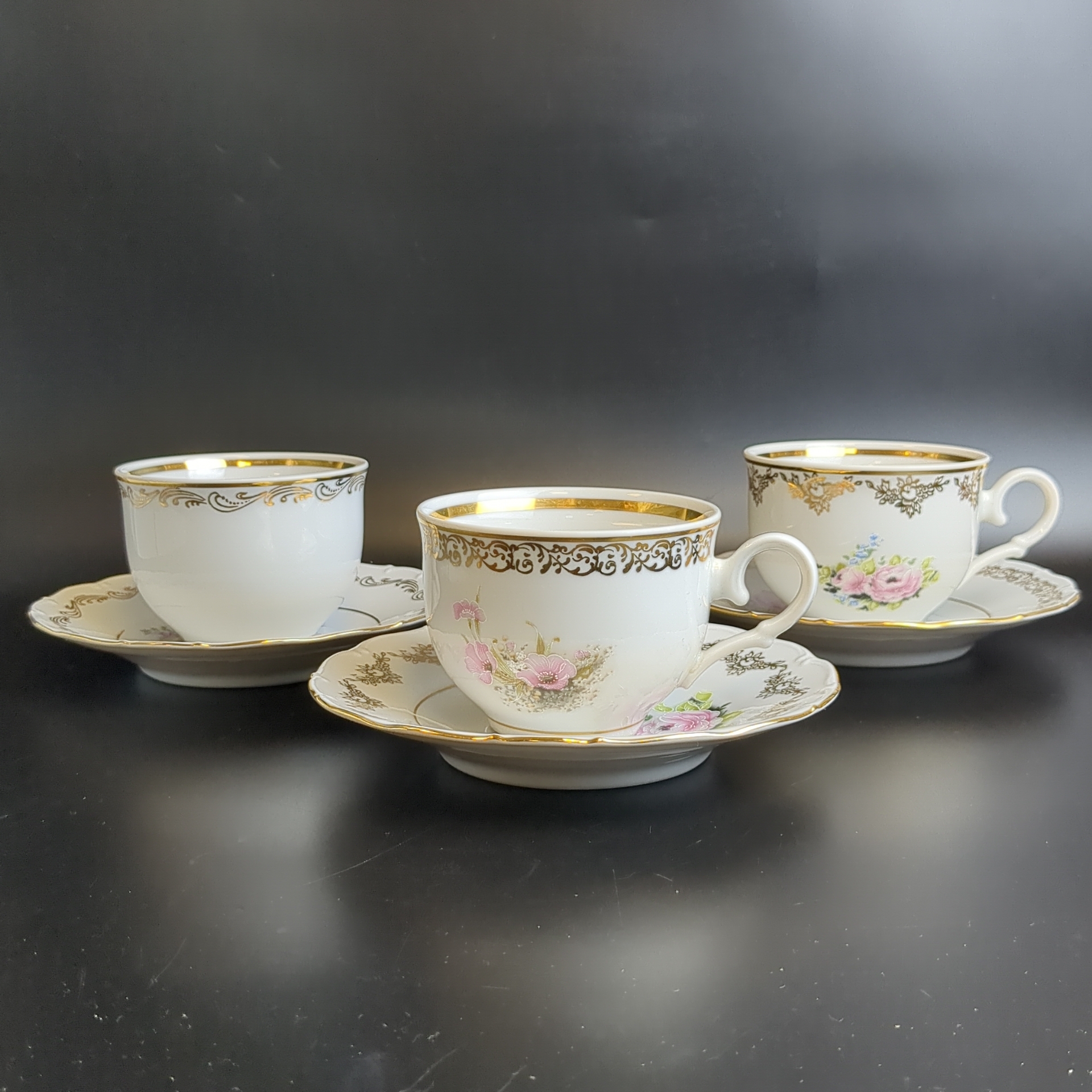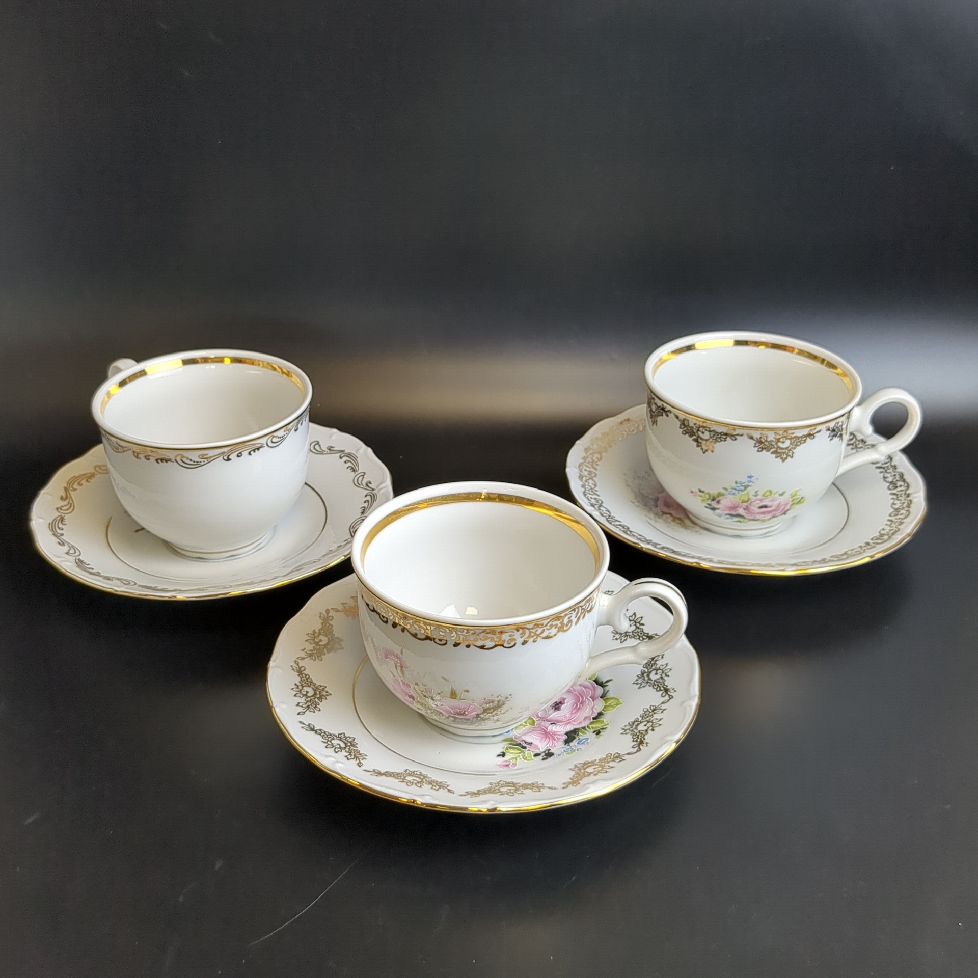 Настоящий чайный изыск из Чехии. Набор из 3 чайных пар — истинное воплощение роскоши и утонченности! Изящно расписанные фарфоровые чашки с росписью птичек и блюдечки, украшенные цветочным орнаментом и эффектным золотым декором – настоящий винтажный шик. Создайте атмосферу уюта и традиции вместе с этим замечательным сервизом.