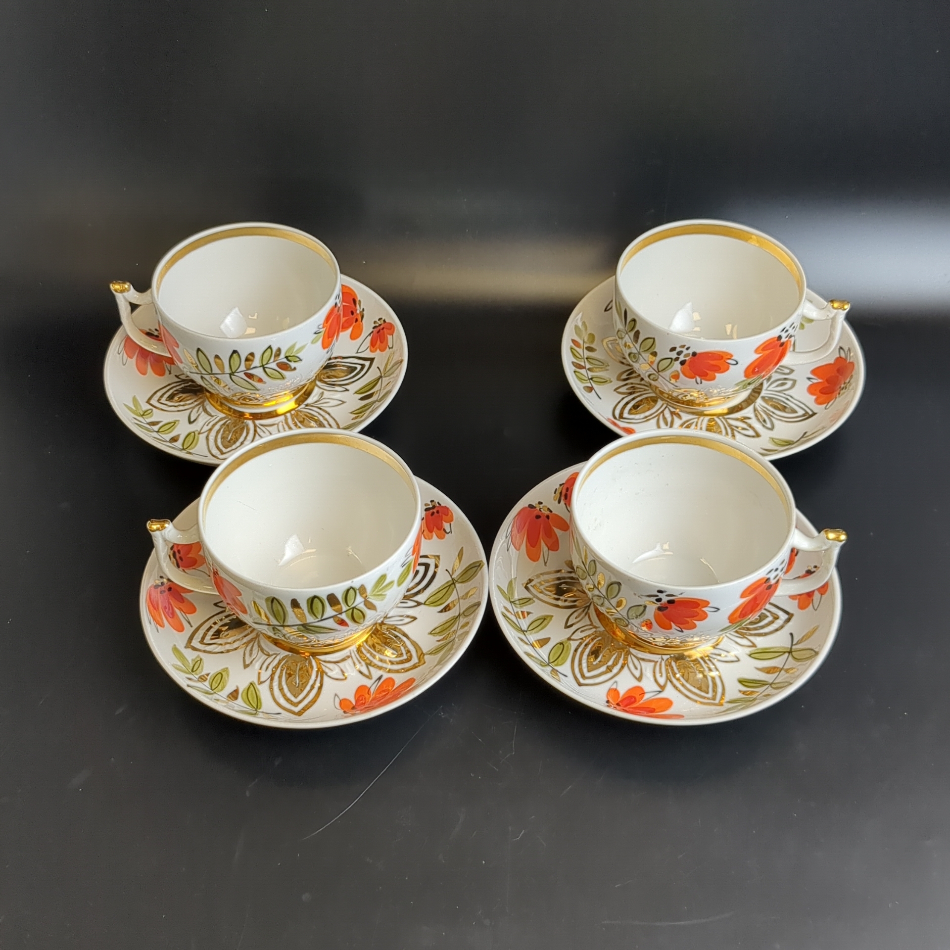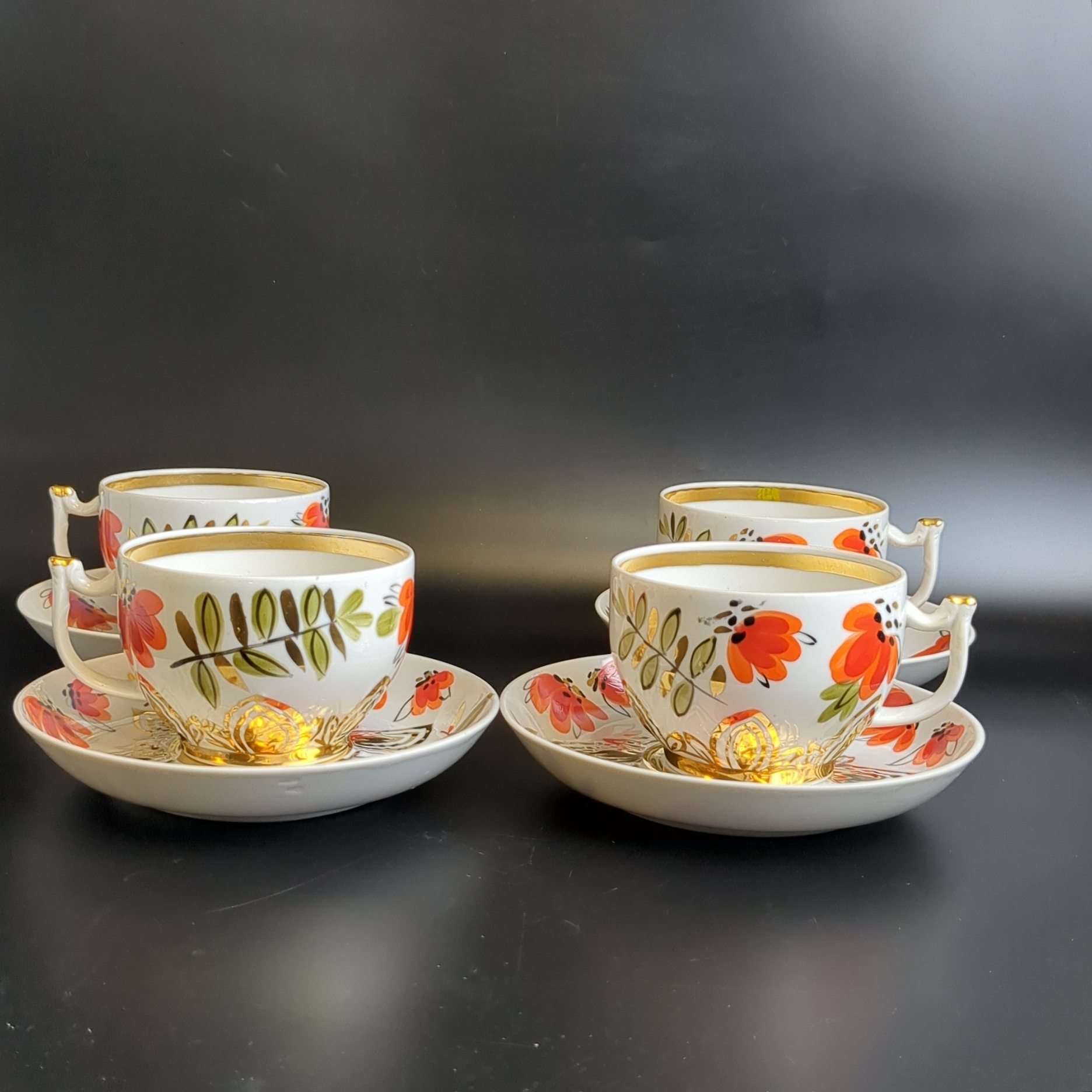 Изящные чайные пары «Маки» — роскошное украшение вашего стола! Великолепно выполненная из качественного фарфора, покрытые изысканной ручной росписью и блестящей позолотой, эта коллекция придаст вашим чаепитиям атмосферу настоящего советского уюта и элегантности. Состав комплекта: 4 чашки + 4 блюдечка. Создайте теплую семейную традицию или удивите гостей истинным винтажом эпохи СССР!