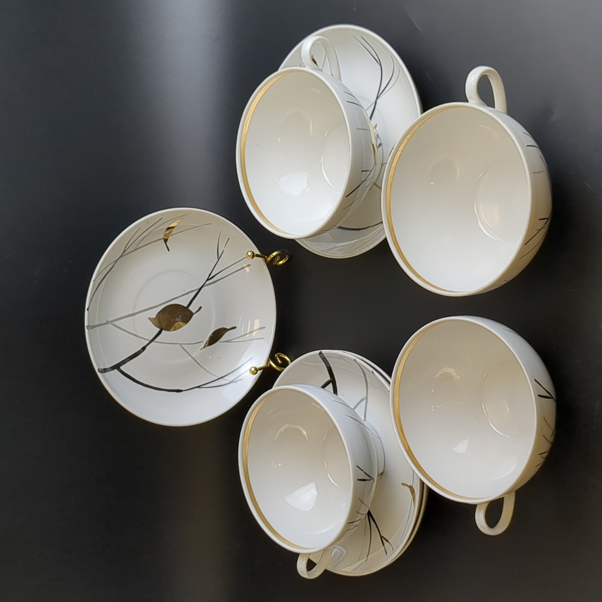 Фарфоровые чайные пары на 4 предмета СССР: винтажная роскошь в вашем доме! Высота чашечки - 5.5 см, диаметр блюдца - 14.5 см. Состояние и комплектация на фото.