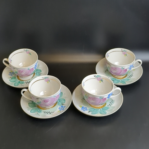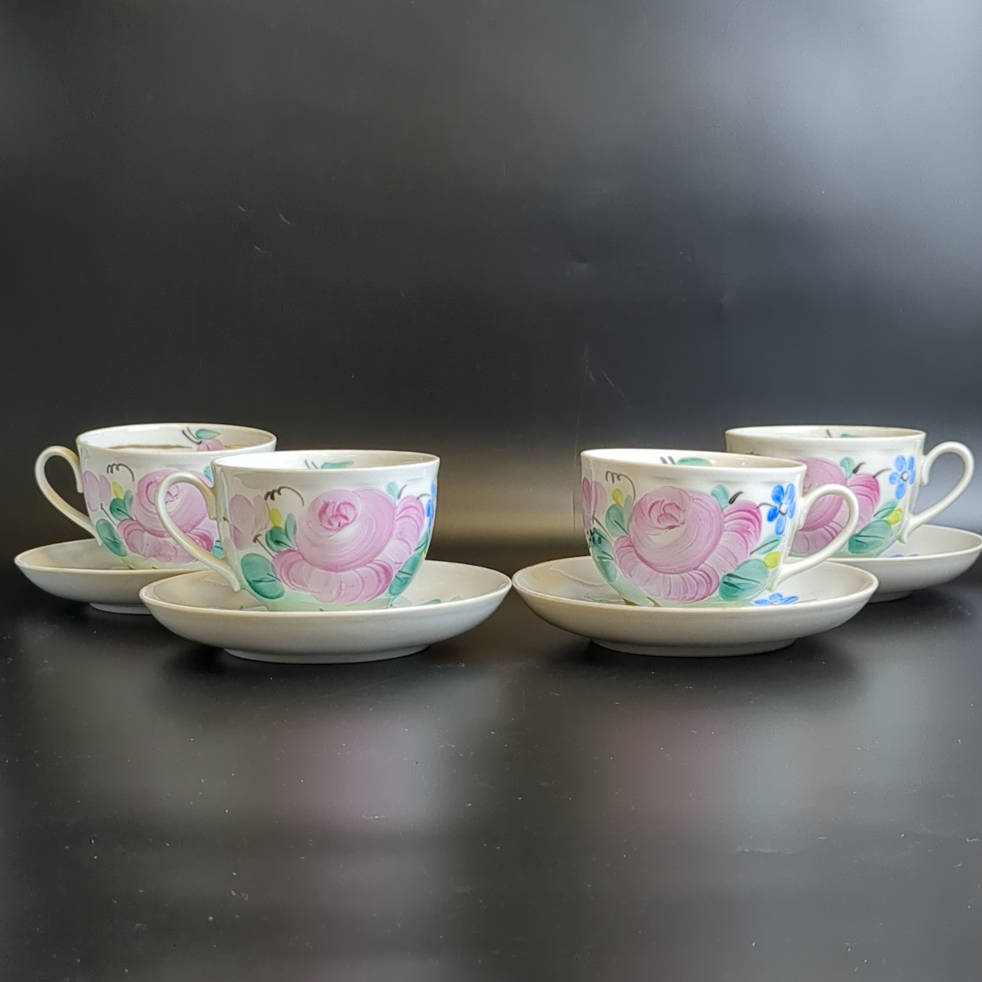 Чайные пары на 4 персоны набор из 8 предметов, фарфор, Дулево ФЗ, Агашки, роспись цветы, позолота, винтаж 1994 года.