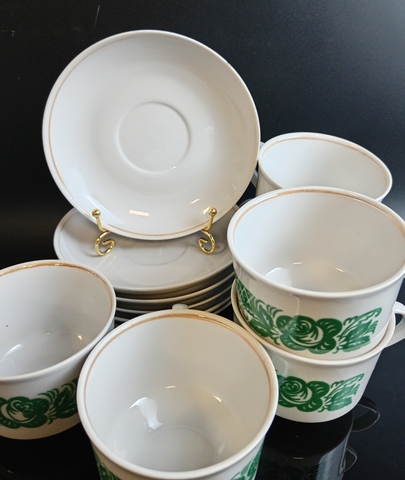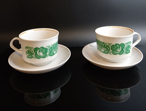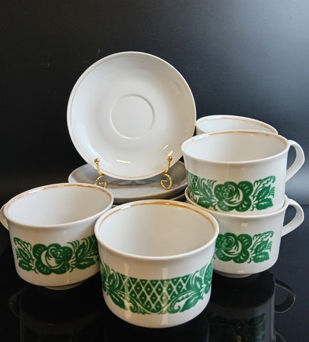 Чайные пары на 6 персон (6 чайных блюдец и 6 чайных чашек), роспись цветы, Дулево ФЗ, винтаж СССР 1991 год. Присутствуют следы использования - состояние на фото