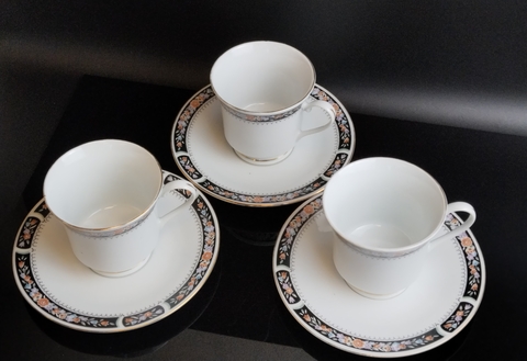 Чайные пары набор из 3 штук (6 предметов), фарфор, деколь, золочение, винтаж Китай 1980-1990 гг. Диаметр блюдца - 15.3 см, высота чашечки - 7.5 см. Состояние и комплектация на фото, частично стёрта позолота.