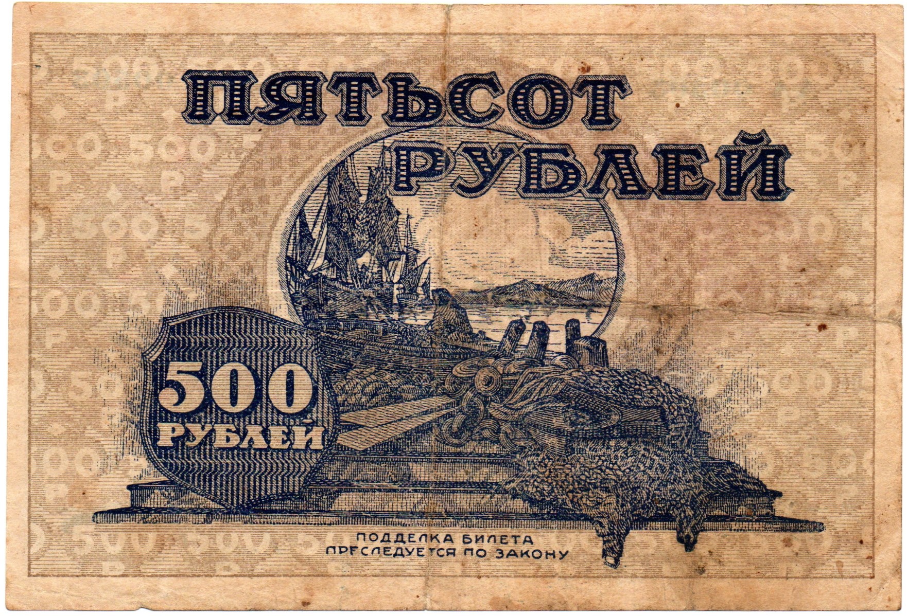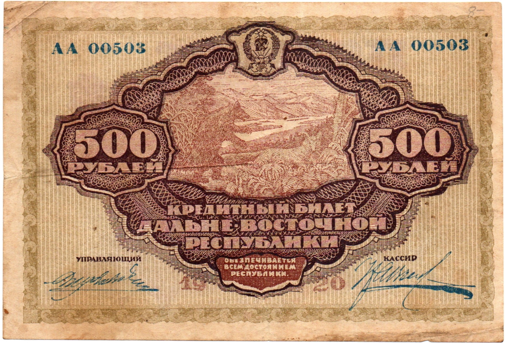 Дальневосточная Республика. Государственный банк.Кредитный билет 500 рублей 1920 г. Серия АА. № 00503.