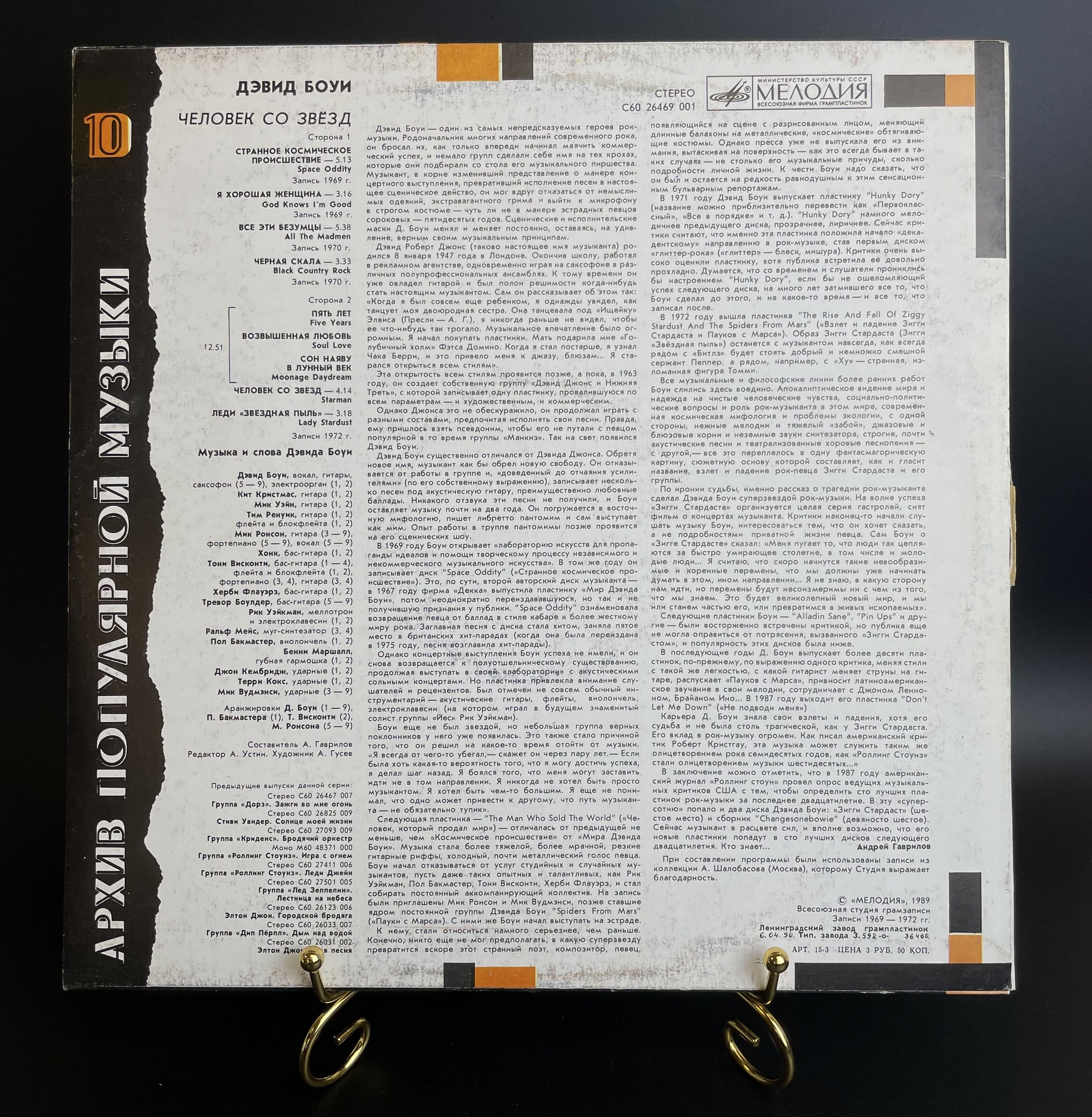 LP David Bowie - Starman - Дэвид Боуи - Человек со звёзд - Архив Популярной Музыки №10. Виниловая пластинка 12 дюймов. Мелодия СССР 1989 год. Конверт EX / Диск EX-