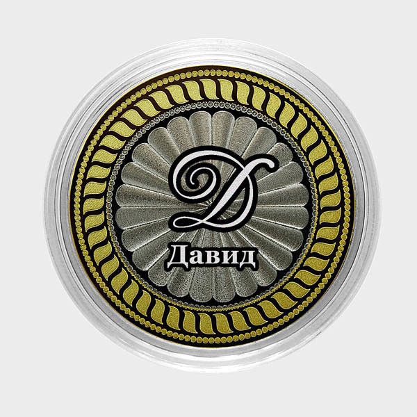 Сувенирная монета "Давид" номиналом 10 рублей с выгравированным изображением.