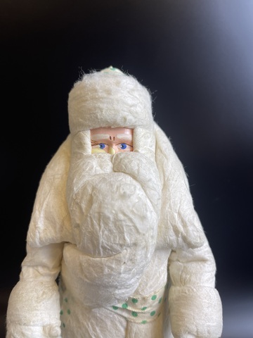 Дед Мороз советский Папье-Маше из ваты, ткани, высота - 22,5 см, Калининское производственное объединение художественной промышленности, СССР, 1960-1970 гг. Присутствуют следы времени и использования, состояние на фото.