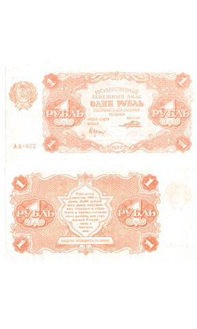 Денежный знак 1 рубль 1922 год. РСФСР