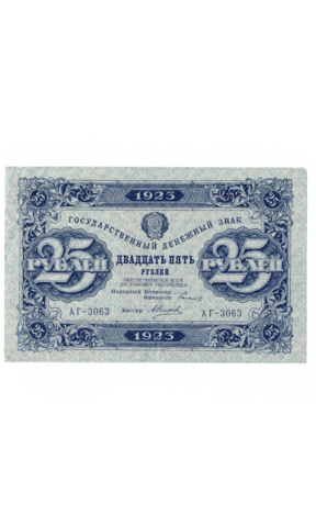 Денежный знак 25 рублей 1923 РСФСР UNC